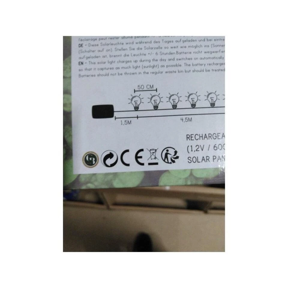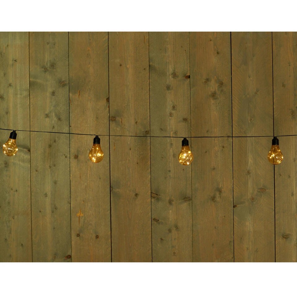 Solar tuinverlichting lichtsnoer. Breng sfeer in je tuin of op je feestlocatie met dit solar lichtsnoer van 4,5 meter. De 10 warm witte LED bollampjes zorgen voor gezellige verlichting, ideaal voor tuinfeesten, barbecues, of als permanente tuinversiering.
