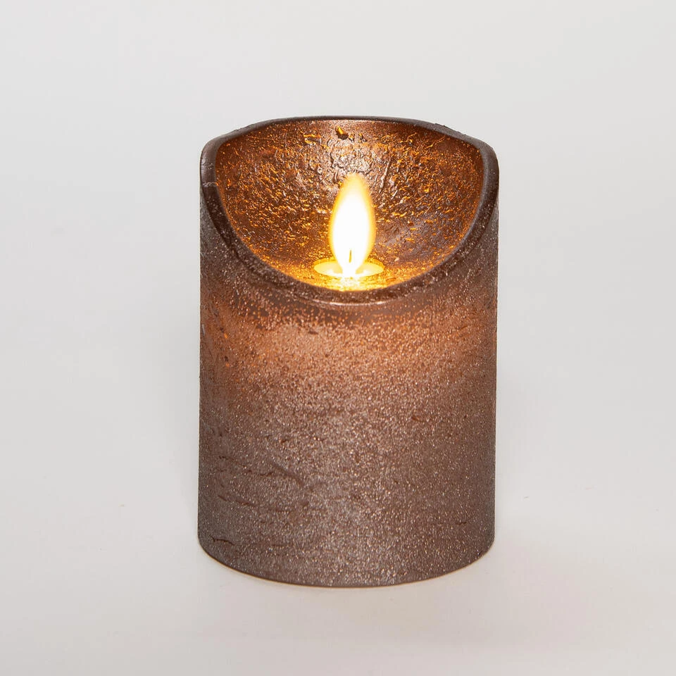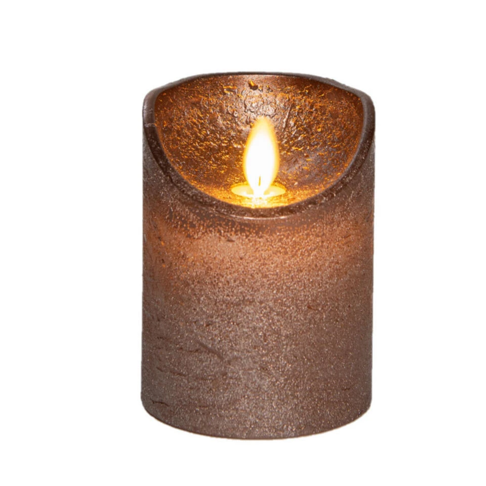 LED stompkaars in de kleur brons. Breng een warme en sfeervolle ambiance in je interieur met de Anna’s Collection stompkaars in brons. Deze stijlvolle LED kaars met een hoogte van 10 cm en een diameter van 7,5 cm biedt de luxe uitstraling van een echte kaars zonder de zorgen van wax en vlammen. De kaars is voorzien van een bewegende vlamfunctie die een authentiek kaarslicht nabootst, waardoor je een gezellige en uitnodigende sfeer creeert in elke ruimte.