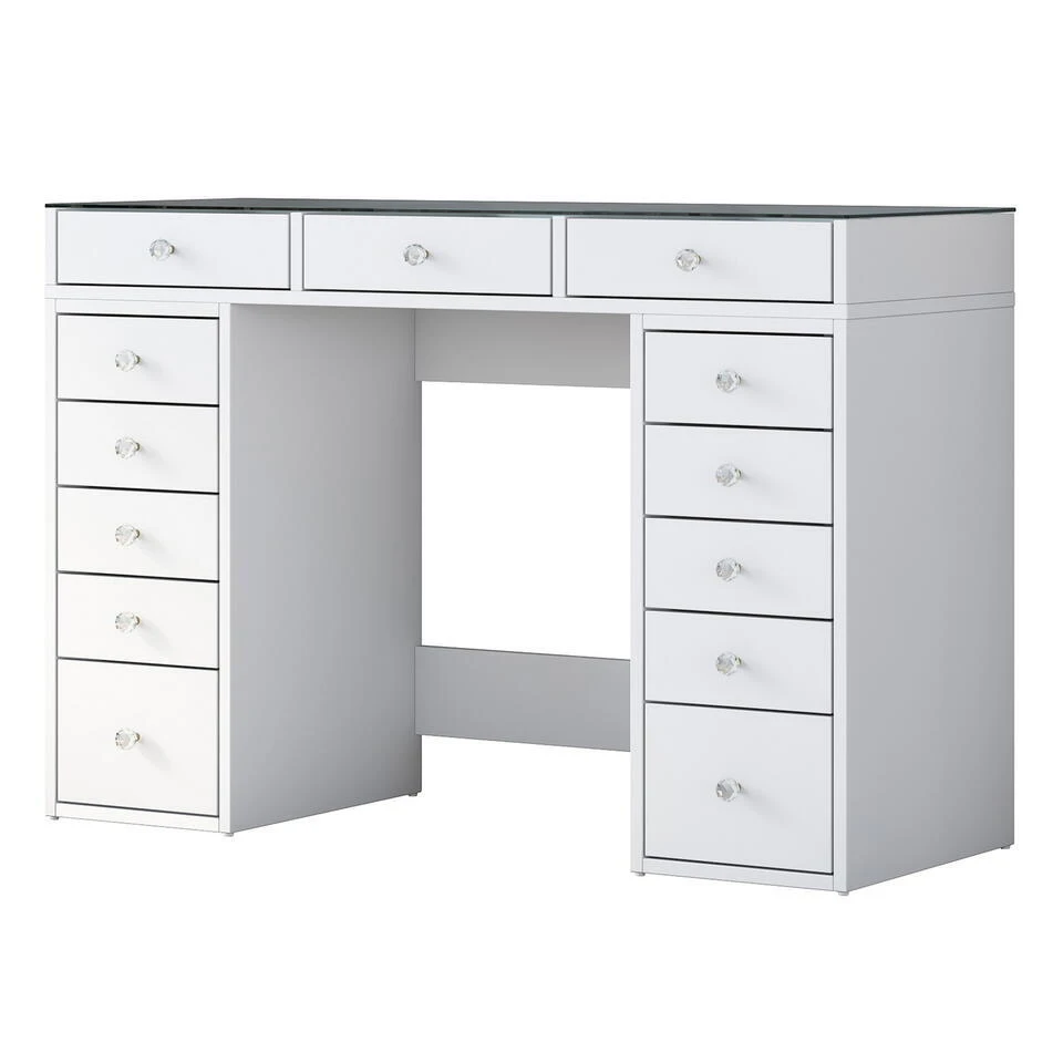 De make-up tafel heeft een prachtige witte kleur die moeiteloos bij elke interieurstijl past. Of je ruimte nu modern, minimalistisch of klassiek is, deze tafel past er naadloos bij en verbetert de algehele esthetiek. De strakke lijnen en strakke afwerking stralen verfijning uit en creëren een rustgevende sfeer.