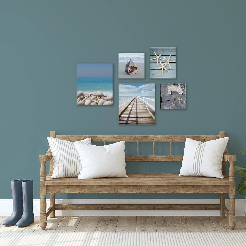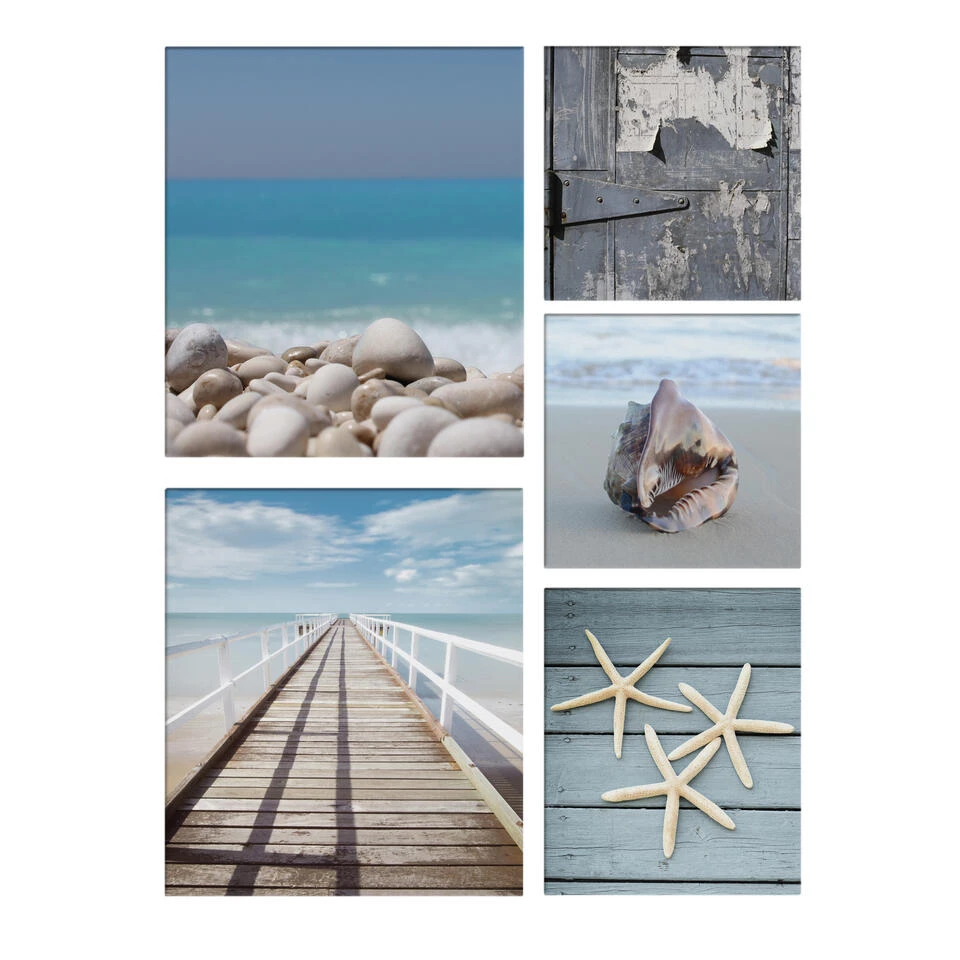 Voeg de warmte en plezier van een dagje strand toe aan je inteur met dit leuke set van 5 canvassen.