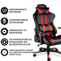 Gamestoel Rood Kimi – Gaming Stoel – Verstelbare Armleuningen