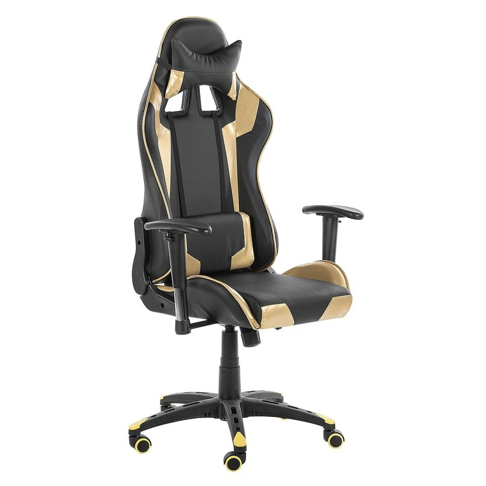 Moderne bureaustoel voor gamers / spelers incl. luxe nek- en rug-kussens. Geef je home office of game room een eigentijdse touch en geniet van een geweldig zitcomfort. Dankzij de verstelbare zithoogte en armleuningen kan je de stoel naar wens aanpassen. Er is zelfs een kussen bij de nek geplaatst voor extra comfort en verlichting van de rug. Dankzij de volledig verstelbare rugleuning kan men even achterover leunen als de vermoeidheid toeslaat.