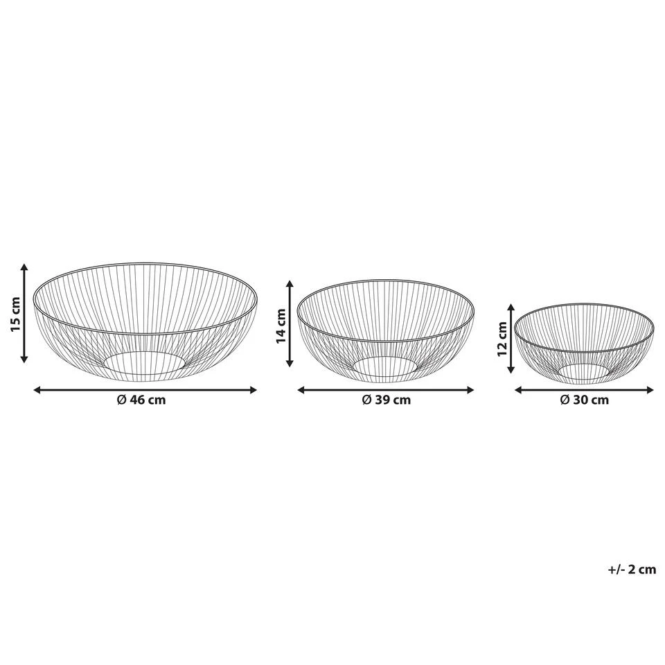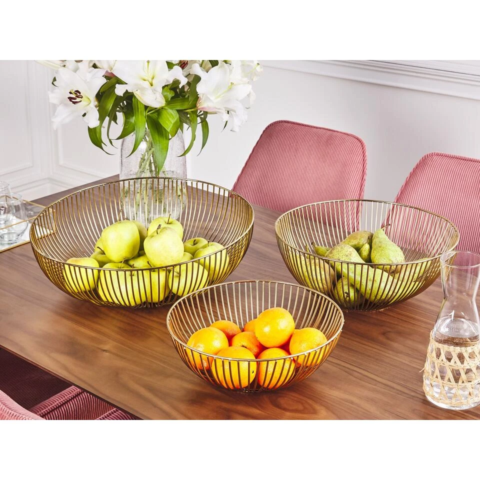 Metalen draad kom set. Geef je tafelblad een stijlvolle look met deze set van 3 decoratieve schalen. Met een gouden metalen frame brengen ze een industriële stijl in je interieur. Het is perfect om je spulletjes in op te bergen. De manden zijn gemaakt van ijzer voor duurzaamheid en zijn gemakkelijk schoon te maken.
