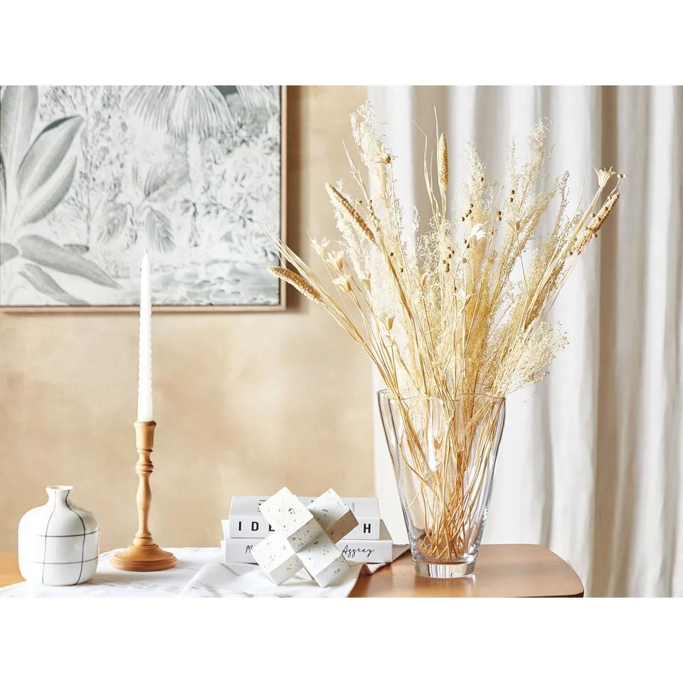 Decoratieve droogbloemen. Met dit prachtige boeket bloemen fleur je elk interieur op. Gemaakt van verschillende gras en plant type, dit boeket heeft een natuurlijke kleur waardoor het bij elke interieurstijl past. Dit droogbloemenboeket heeft lange stelen die perfect zijn voor een hoge vaas. Zet hem op tafel of op de kast om een vleugje elegantie aan je interieur toe te voegen.