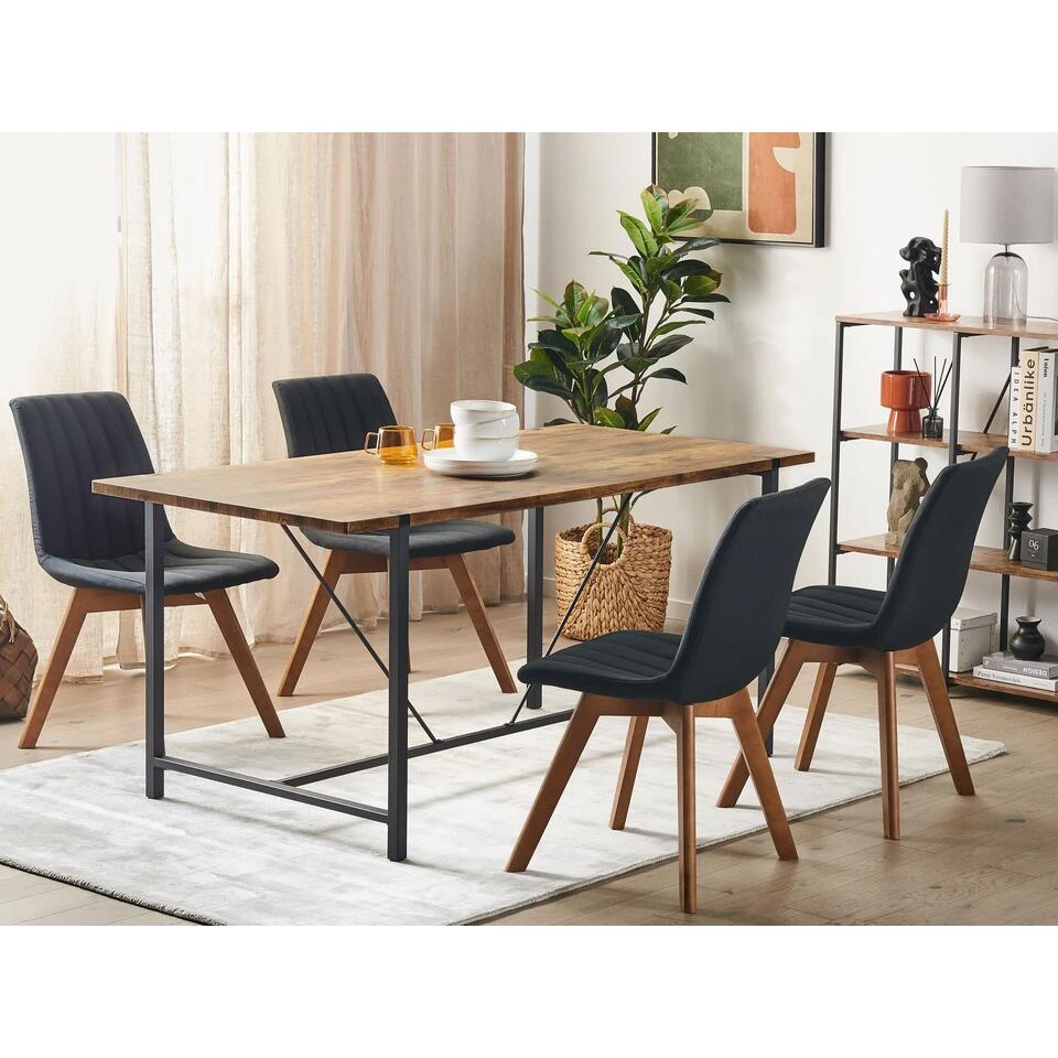 Moderne tafel met metalen onderstel. Vernieuw de inrichting van je eetkamer met deze industrieel geïnspireerde tafel. Het blad heeft een houtachtige afwerking en een klassiek ontwerp. Het meubel kan comfortabel plaats bieden aan 4 personen, waardoor het de perfecte plek is voor maaltijden met het gezin of lange avonden van gezellig tafelen.