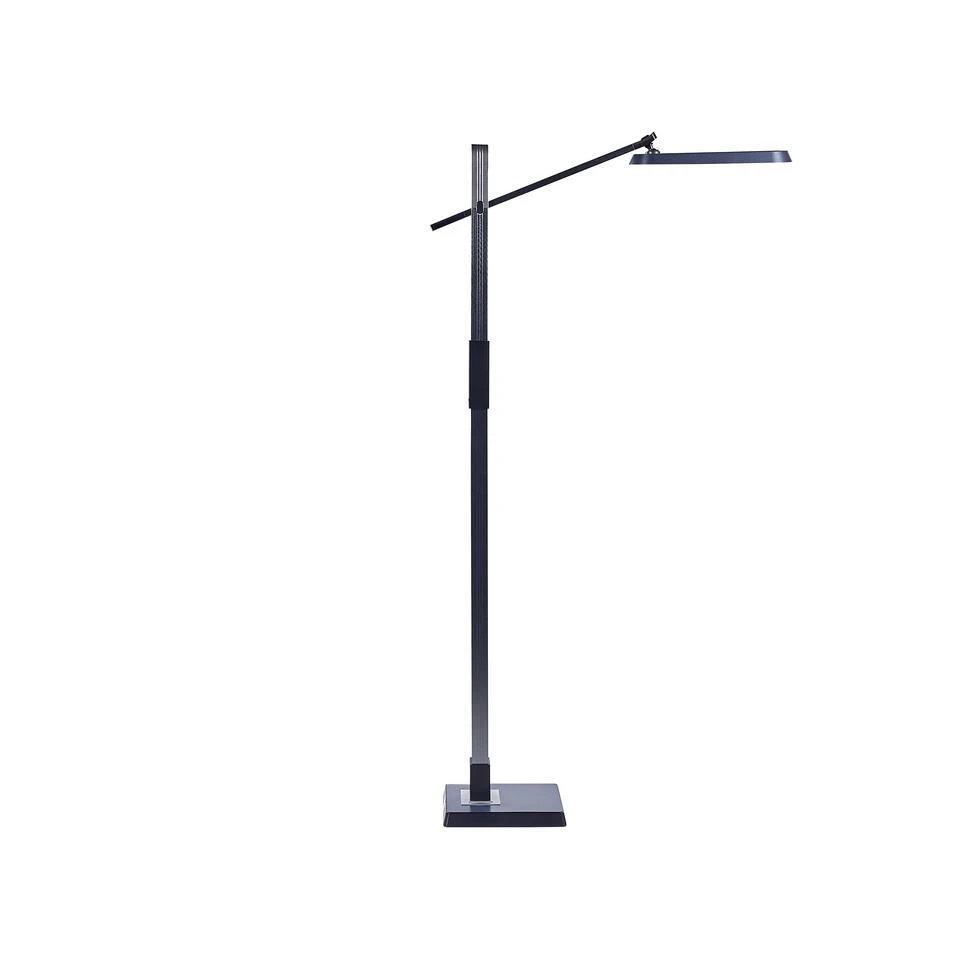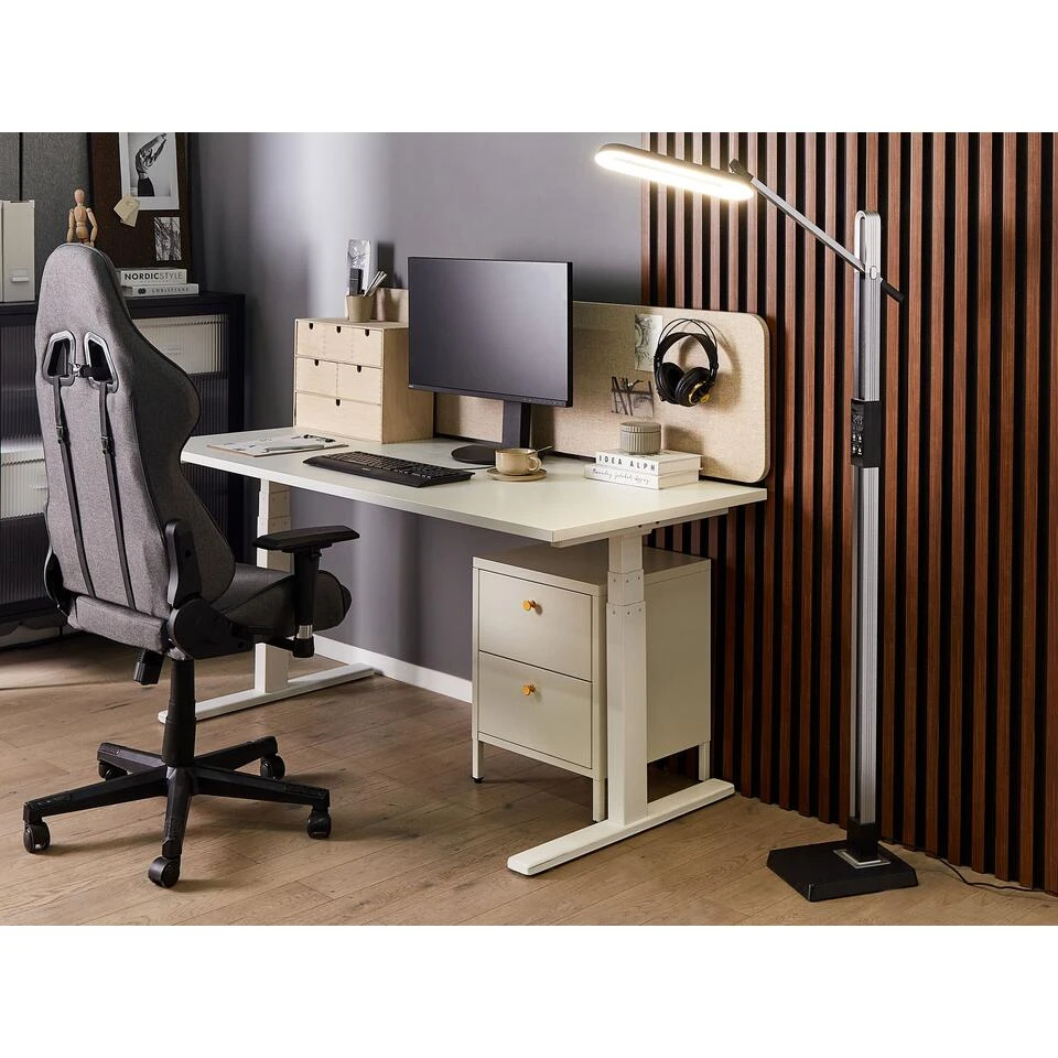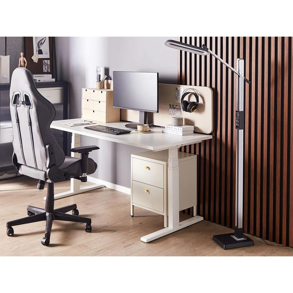Moderne LED-lamp met dimmer en aanraakschakelaar. Maak je kantoorruimte helder en perfect voor verschillende taken met deze LED-lamp. Het stuk, gemaakt van duurzaam kunststof en aluminium, gaat vele jaren mee, zelfs zonder dagelijks onderhoud. Hierdoor hoef je je nooit meer zorgen te maken dat je niet genoeg licht hebt. De lamp heeft 3 standen, elk met een andere lichtintensiteit, en de arm en kap kunnen worden aangepast aan je behoeften. Het stuk is eenvoudig te bedienen dankzij aanraakschakelaars, geplaatst op een LCD, die ook de huidige tijd, datum en temperatuur weergeeft. De lamp staat stabiel dankzij de rechthoekige voet. Unieke vorm en trendy, donkergrijze kleur zorgen ervoor dat dit accessoire goed past in moderne, industriële interieurs.