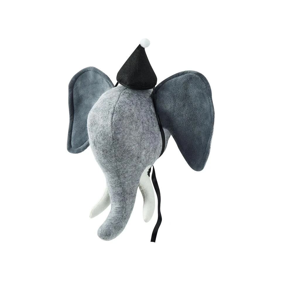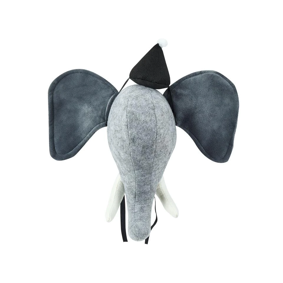 Olifant hoofd speelgoed decoratie. Versier je kinderkamer met deze unieke decoratie die niet alleen de aandacht van je kindje zal krijgen, maar ook een stijlvolle aanvulling is op je interieur. Dit vilten olifanten hoofd met zachte pluche oren en een schattig hoedje zal elke ruimte opvrolijken. Met ingebouwd ophanghaakje zodat je hem gemakkelijk aan de muur hangt.