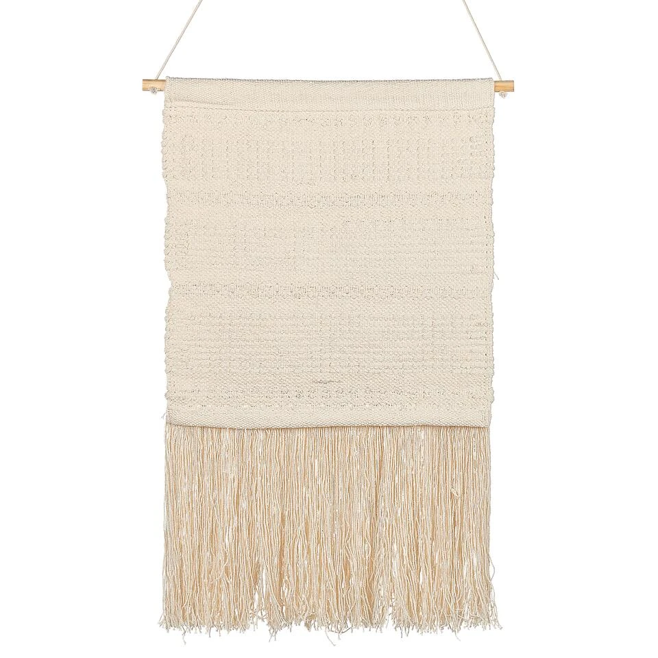 Handgemaakte boho wandhanger met franjes. Deze stijlvolle wanddecoratie brengt een vleugje boho-stijl en gezellige sfeer in elke ruimte. Het wandkleed is met de hand gemaakt van katoen met oog voor detail. De decoratie is licht, waardoor je hem gemakkelijk aan de muur kunt hangen. Delicate geometrische patronen en kwastjes maken het tot een unieke toevoeging aan elke woonkamer of slaapkamer.