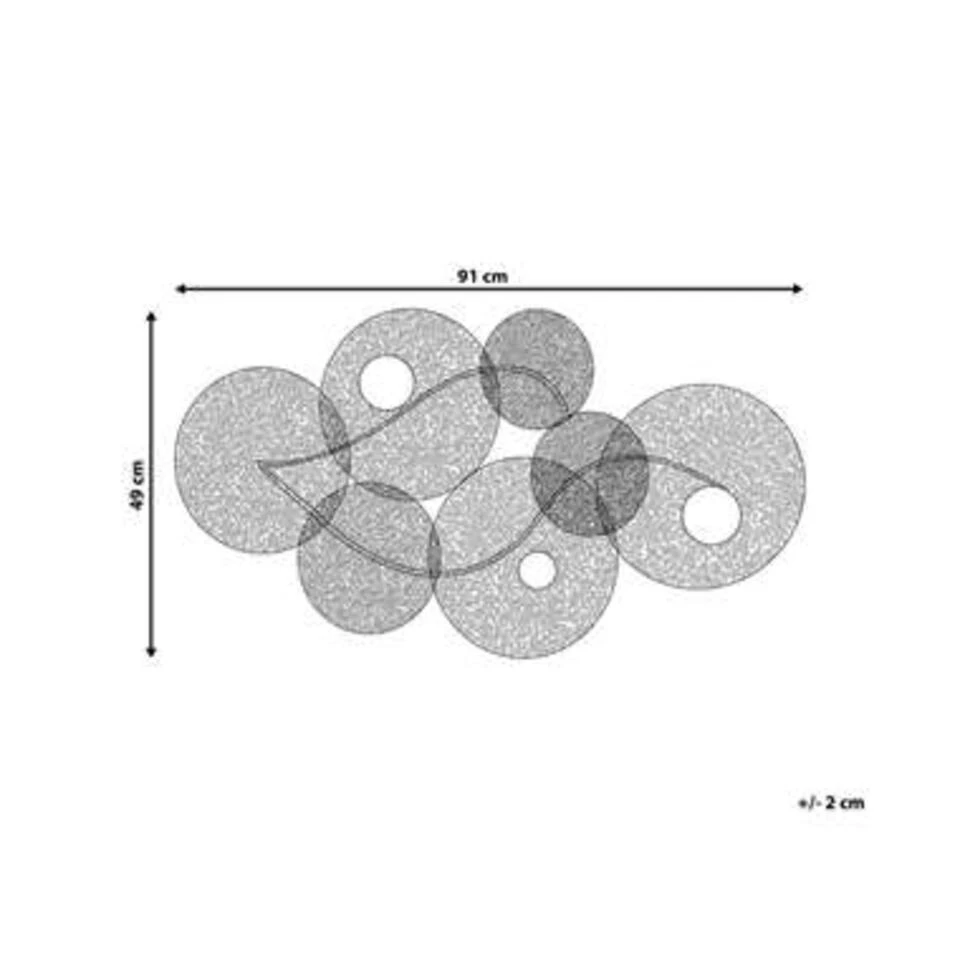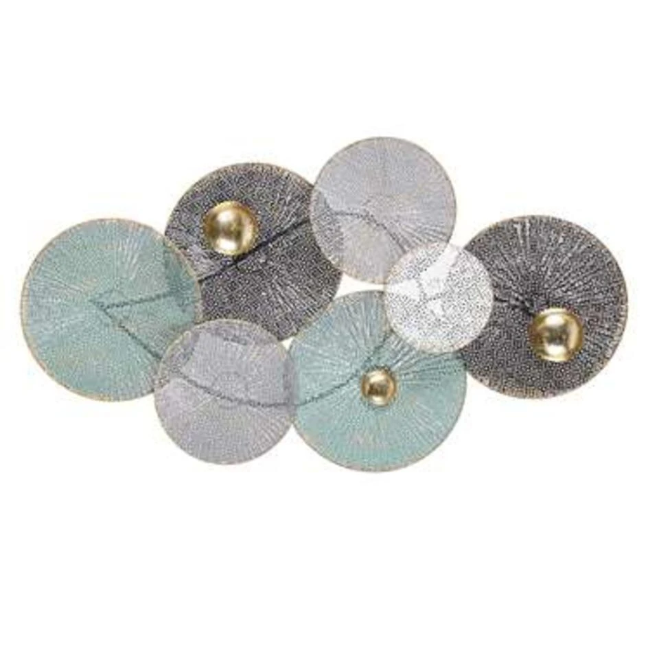 Metalen wanddecoratie met trendy kleuren. Een modern deco-element voor jouw muur! Deze wanddecoratie bestaat uit verschillende componenten in cirkelvorm, die samen een harmonieuze eenheid vormen. Het esthetische kleurenschema is perfect te integreren met verschillende interieurstijlen.