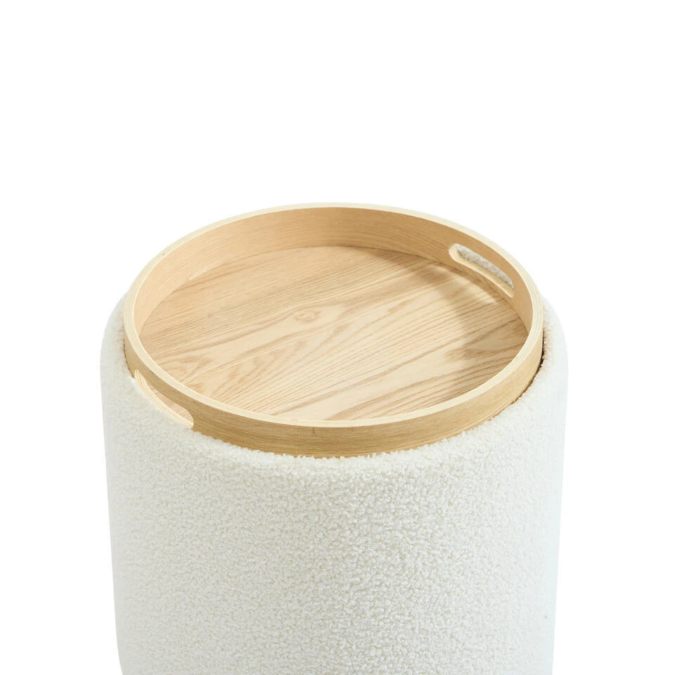 De KEMI woonkamer poef is het perfecte meubelstuk om een vleugje Scandinavische stijl toe te voegen aan uw interieur. Met een omkeerbaar blad van natuurlijk afgewerkt hout biedt deze poef niet alleen handige opbergruimte, maar ook optimaal comfort dankzij de bouclé-structuur. Gecertificeerd Oeko-Tex om de duurzaamheid van het product te garanderen, kan deze poef tot 120 kg dragen. Gemakkelijk te onderhouden en met een tijdloze witte kleur, combineert de Nordlys poef zowel praktisch nut als elegantie om uw leefruimte te verfraaien. Met zijn hoogwaardige kenmerken en doordacht ontwerp is deze poef de ideale keuze om een vleugje moderniteit aan uw interieur toe te voegen terwijl u ongeëvenaard comfort biedt. Dit product bevat hout, een natuurlijk materiaal waarvan de tint iets kan variëren afhankelijk van het licht.