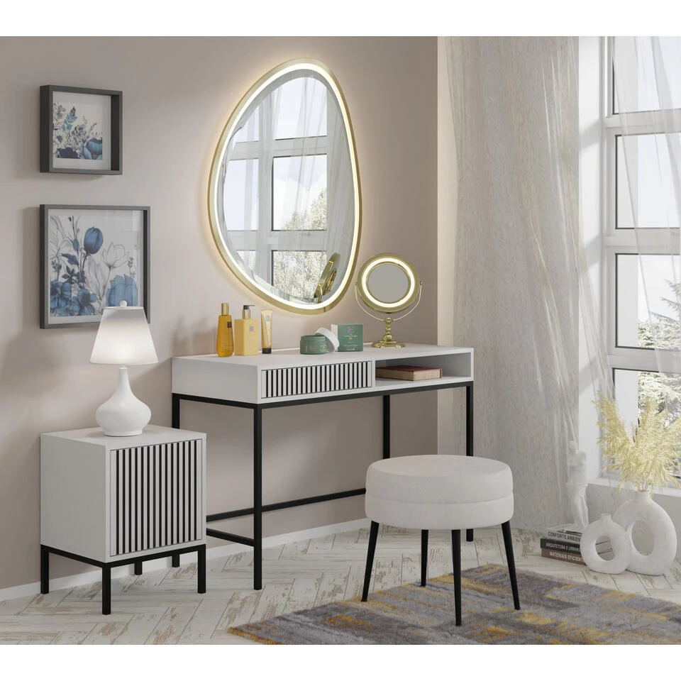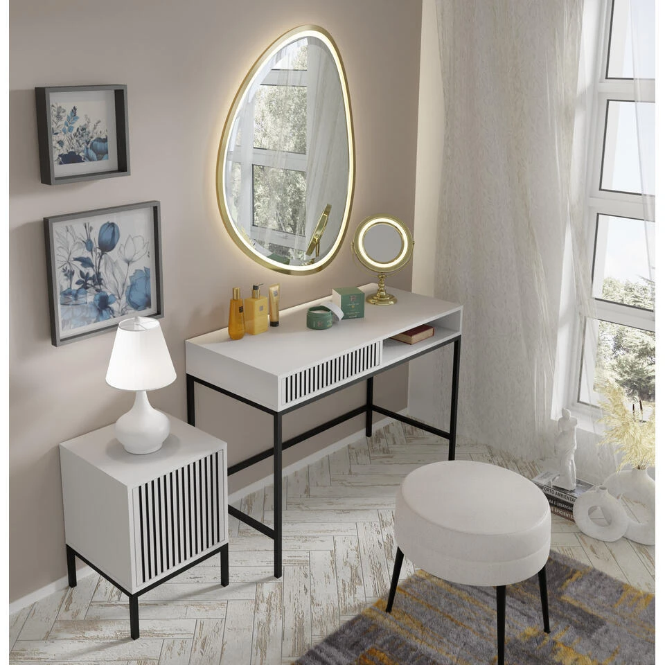 De meubels zijn vervaardigd uit hoogwaardige materialen, waaronder gefreesd en gelakt MDF.