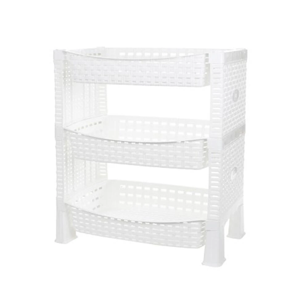 Deze 3-laagse opbergrek is een praktische en stijlvolle oplossing voor extra opbergruimte in de keuken. Het opbergrek is gemaakt van kunststof. Met zijn compacte afmetingen past hij perfect in kleinere keukens, badkamers, of andere ruimtes waar je opbergruimte nodig hebt. De trolley heeft luchtgaatjes in de schappen en dat zorgt voor goede ventilatie, handig voor in de keuken als je hem gebruikt om fruit en groente op te bewaren. Met dit opbergrek creeer je extra opbergruimte waar je maar wilt, en de 3-laagse indeling maakt hem veelzijdig en ideaal voor dagelijks gebruik in elke ruimte van het huis! Afmeting trolley: ca. 47 x 41 x 30 cm. Materiaal: kunststof. Merk: Casa Menaje. Kleur: wit.