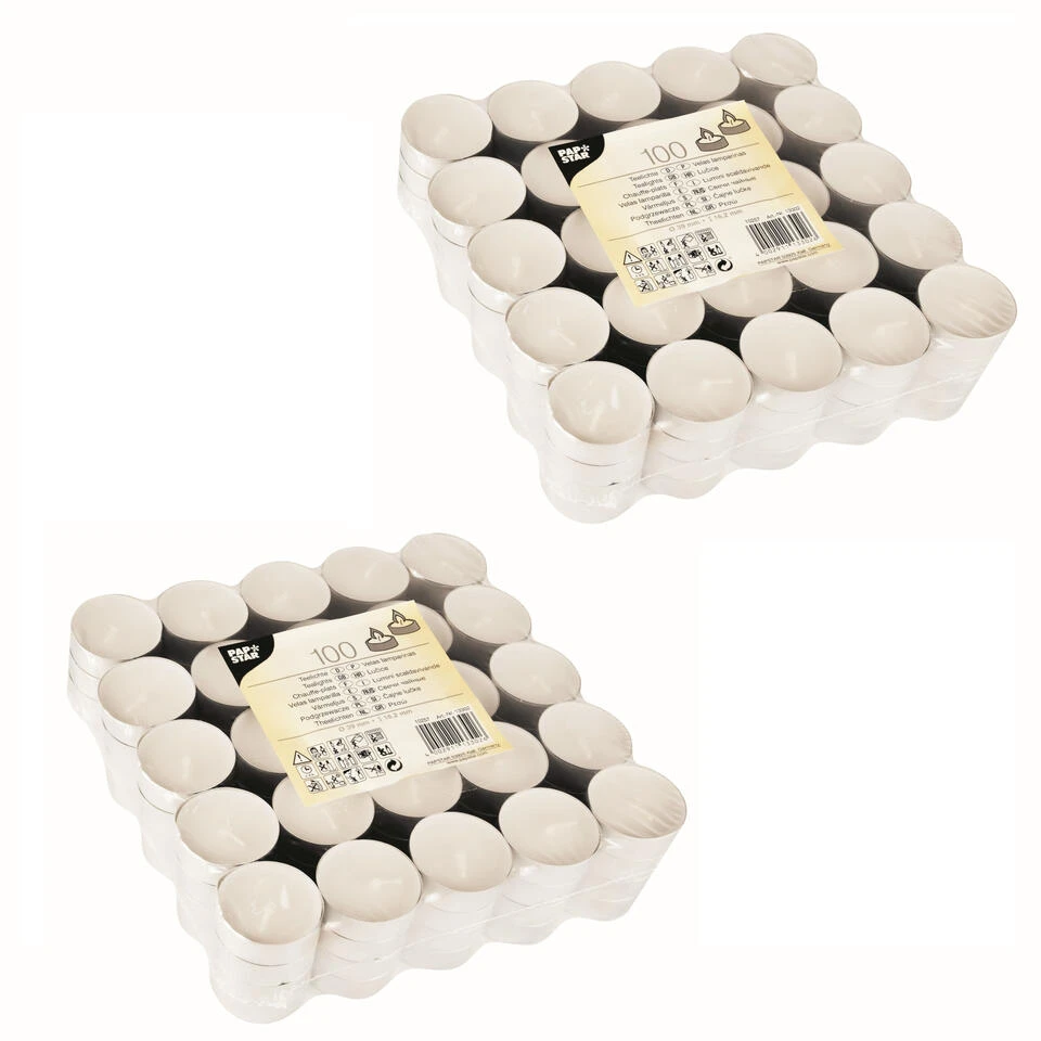 100x stuks Waxinelichtjes/theelichten 4 branduren. De kaarsjes hebben een diameter van 1,6 cm.