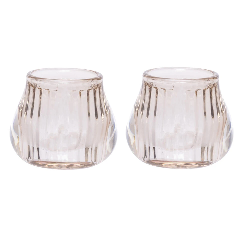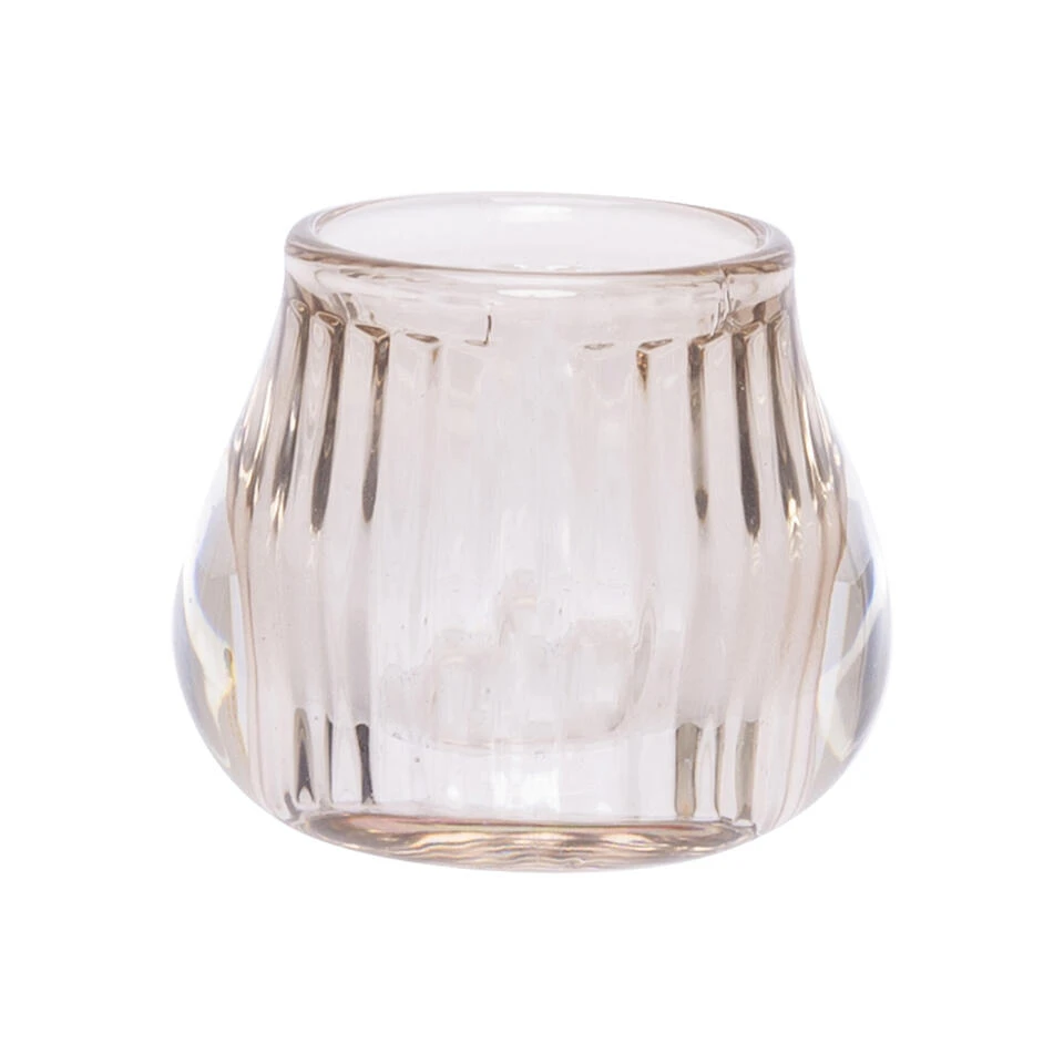 Ronde beige theelichthouder / waxinelichthouder gemaakt van glas. Afmetingen: 8 x 8 x 6,8 cm. Geschikt voor theelichtjes / waxinelichtjes.