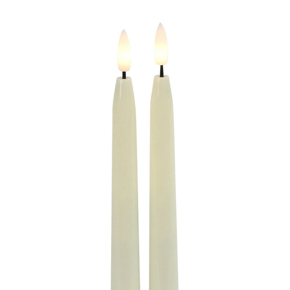 LED dinerkaarsen in de kleur beige/creme wit uit de Elegance serie van het merk Countryfield. De LED kaarsen/dinerkaarsen in de kleur beige wit wit zijn gemaakt van hoogwaardig materiaal en hebben een lengte van ongeveer 28 cm. Met de meegeleverde afstandsbediening kun je de timer instellen. De kaarsen zijn per 2x stuks verpakt en zijn veilig te gebruiken omdat ze geen echte vlam hebben. De kaarsen hebben een diameter van 2,2 cm. Voeding afstandsbediening: CR2025 knoopcel batterij (inbegrepen) en voeding per kaars: 2 AAA batterijen (niet inbegrepen). Materiaal: polystone.