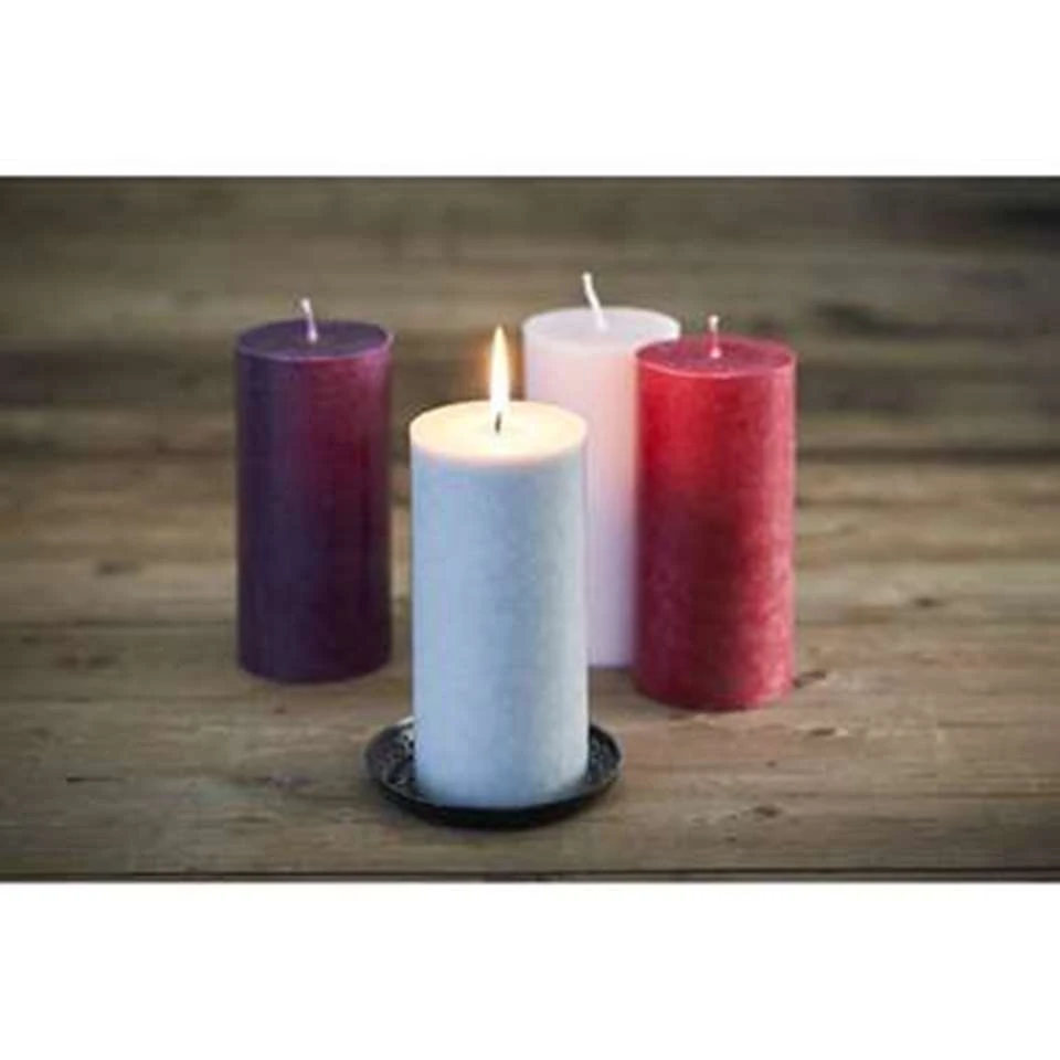 Aantal kaarsen: 1. Formaat: diameter 7 cm, hoogte 15 cm. Aantal branduren: 50 uur. Materiaal: stearine. Gewicht: 535 gram. Kleur: paars.