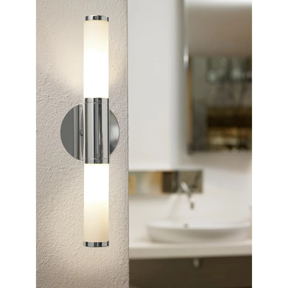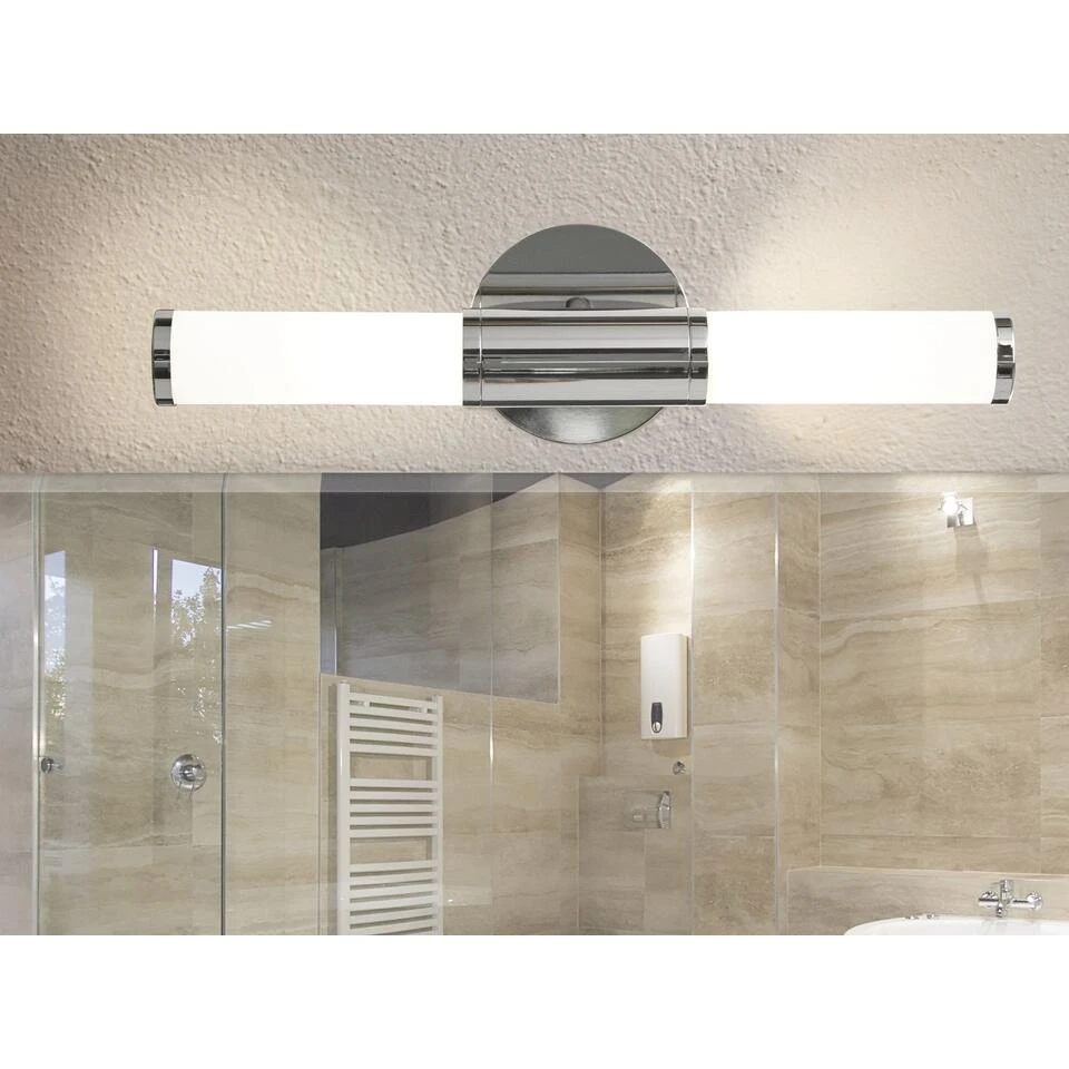 De Eglo Palmera Right is een stijlvolle badkamerlamp in een rechthoekige vorm. Ideaal voor bijvoorbeeld het bad. Deze lamp is gemakkelijk te bevestigen aan de wand. De behuizing is gemaakt van staal en de lampenkap is gemaakt van opaal glas. Deze combinatie resulteert in een design badkamerlamp. Binnen in de lamp bevinden zich twee lampjes. Deze lamp worden niet meegeleverd. De lamp straalt een egaal en helder licht uit en geeft een mooie sfeer in de badkamer. De Eglo Pamera Right is gemakkelijk te reinigen. De lamp is verkrijgbaar in zilver en in chroom.