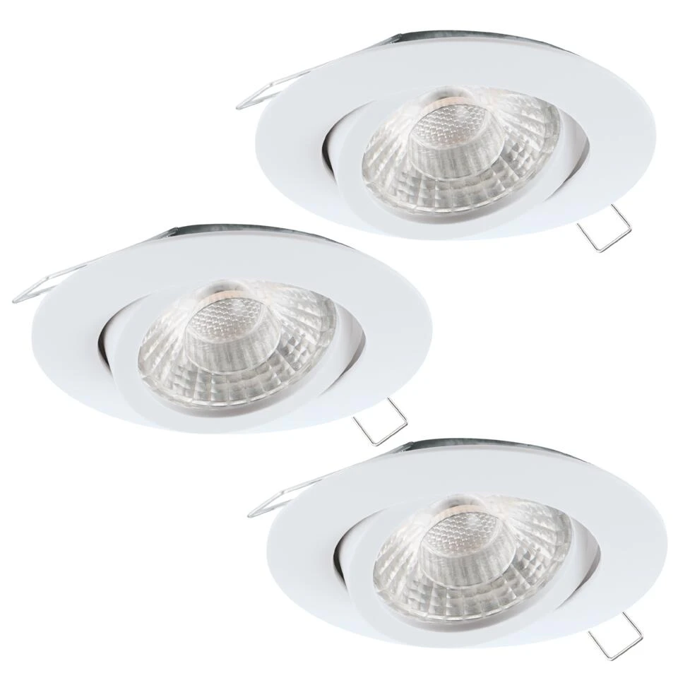De EGLO Tedo 1 is een inbouwarmatuur gemaakt van gegoten aluminium en heeft een witte afwerking. Deze inbouwarmatuur met GU10 fitting wordt geleverd inclusief LED lichtbron en heeft een diameter van 8cm. De spotkop is kantelbaar. Dit energiezuinige inbouwarmatuur heeft een verbruik van slechts 5W en geeft warm wit licht. De spot maakt gebruik van Step Dimming technologie. Hierdoor is hij dimbaar is drie standen (100%, 50% of 25% lichtsterkte). Snel AAN/UIT schaken is voldoende om de lichtbron te dimmen. Een dure LED dimmer is dus niet nodig. De inbouwarmatuur Tedo 1 is toepasbaar in diverse woon- en/of werkruimten. De spots zijn per drie verpakt.