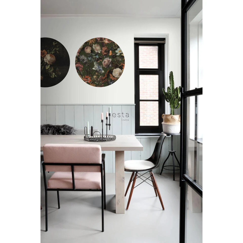 ESTAhome Zelfklevende Behangcirkel – Bloemen – Vergrijsd Olijfgroen – Ø 70 Cm