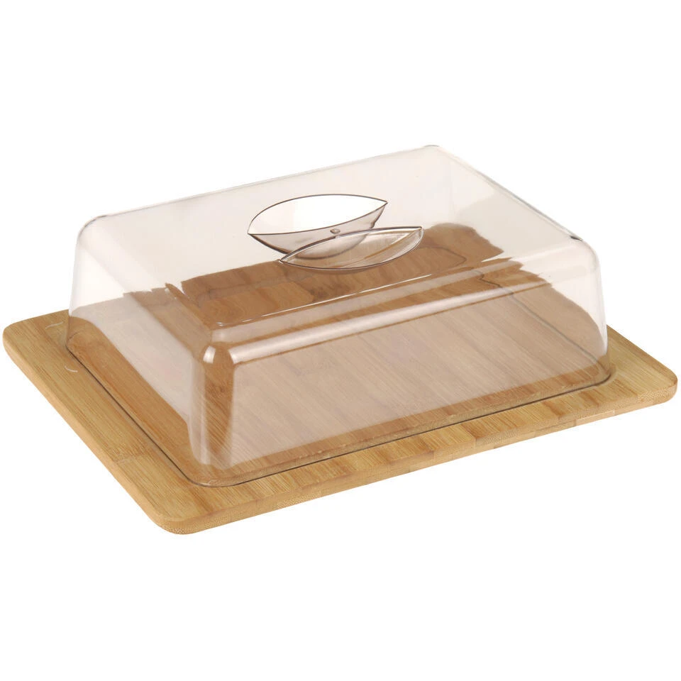 Kaas/hapjes stolp vershouddoos/serveerplankje 26 x 20 x 7 cm. Hiermee houd u de kaas langer vers. Bewaardoos of serveren op tafel. Materiaal: bamboe basis en kunststof deksel.