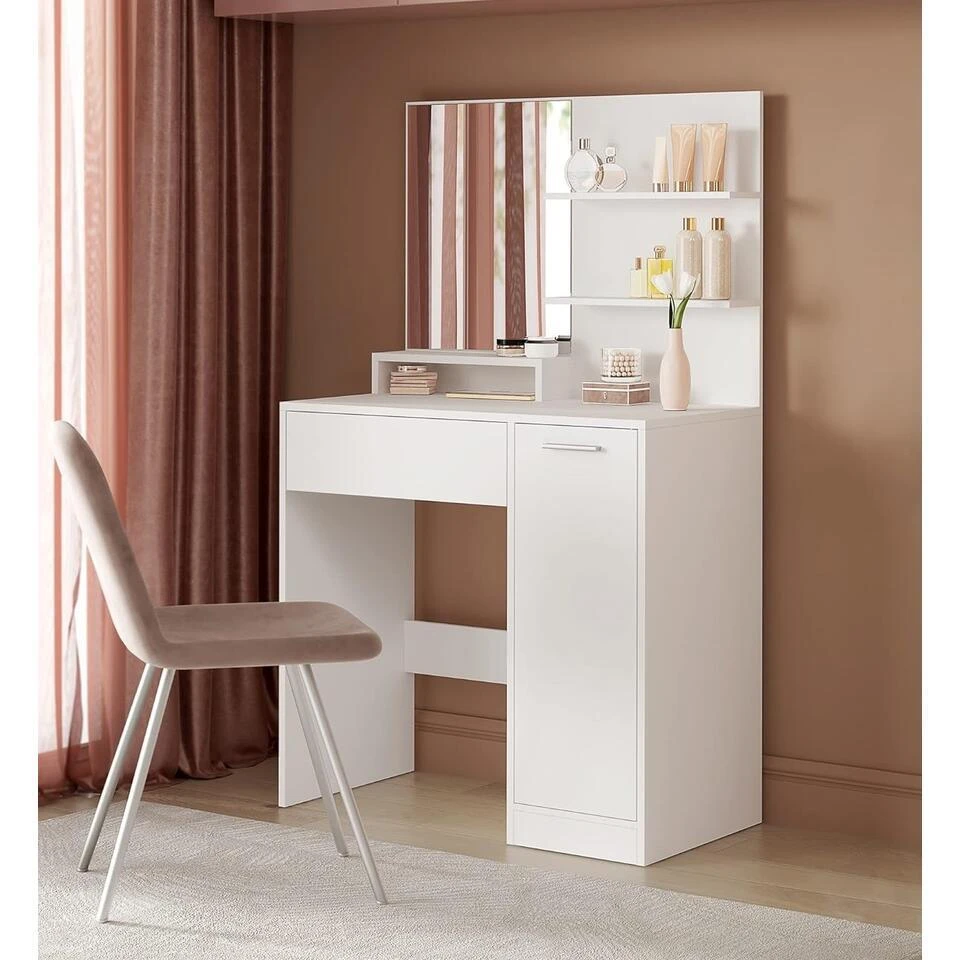 Schoonheid vervaagt nooit: met een duurzaam spaanplaatblad en gladde verf wil deze kaptafel u jarenlang vergezellen als uw schoonheidszone en al uw cosmetica beschermen
