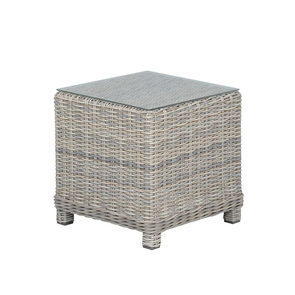 Ben je op zoek naar een mooie bijzettafel van wicker voor bij jouw Santa Rosa relaxfauteuils? Dan is deze vintage willow kleurige bijzettafel gemaakt van wicker echt iets voor jou. Dit bijzettafeltje heeft een aluminium binnenframe met daar omheen 6mm half rond wicker vlechtwerkdraad. Dit bijzettafeltje met heldere glasplaat past mooi bij de verstelbare relax fauteuil en voetenbank in hetzelfde vlechtwerk. Deze mooie bijzettafel heeft een afmeting van 45 x 45 x H46 cm. Een uitgebreide collectie bijzettafels vind je binnen de categorie tuinmeubelen. Tuinmeubelen van verschillende mooie merken.