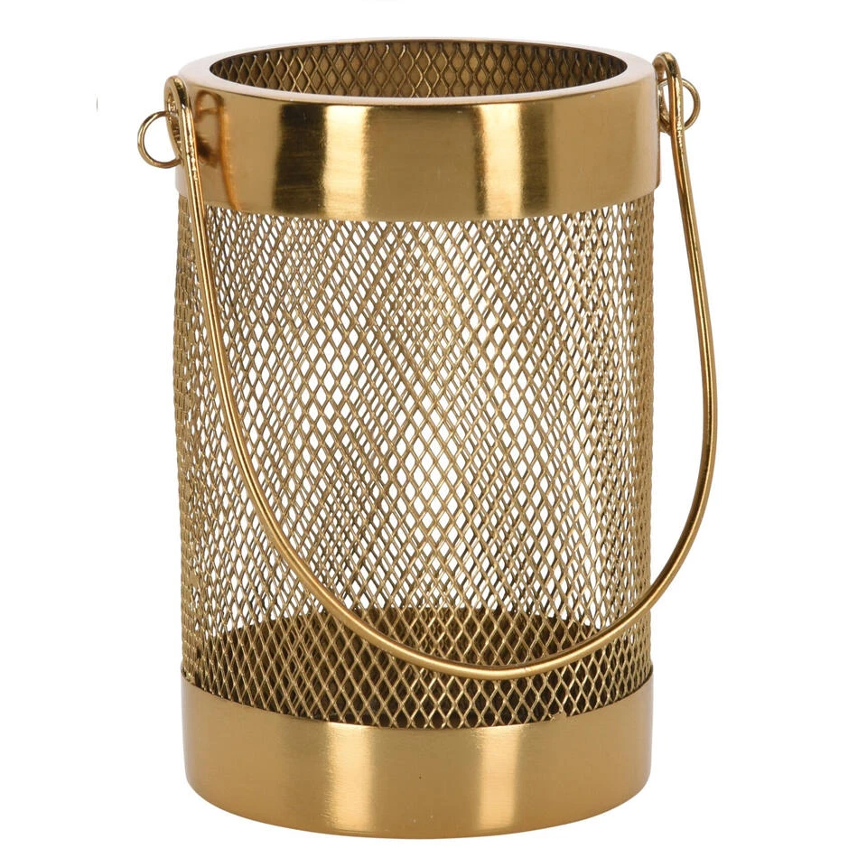 H&S Collection Windlicht – Goudkleurig – Metaal – 12 Cm – Lantaarn