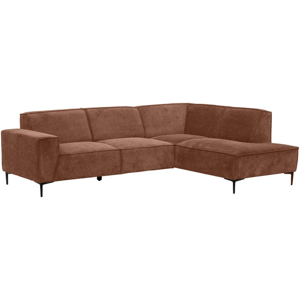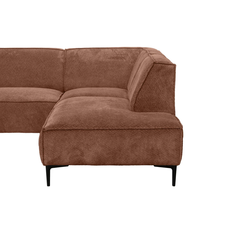 Hoekbank Romy heeft een sfeervolle en moderne uitstraling in een trendy terrakleurige stof. De bank heeft een hoek aan de rechterkant en is voorzien van slanke metalen poten. Deze ruime hoekbank is perfect voor het hele gezin. Als jij houdt van een bank met veel comfort en een moderne uitstraling, dan is deze bank een echte musthave!