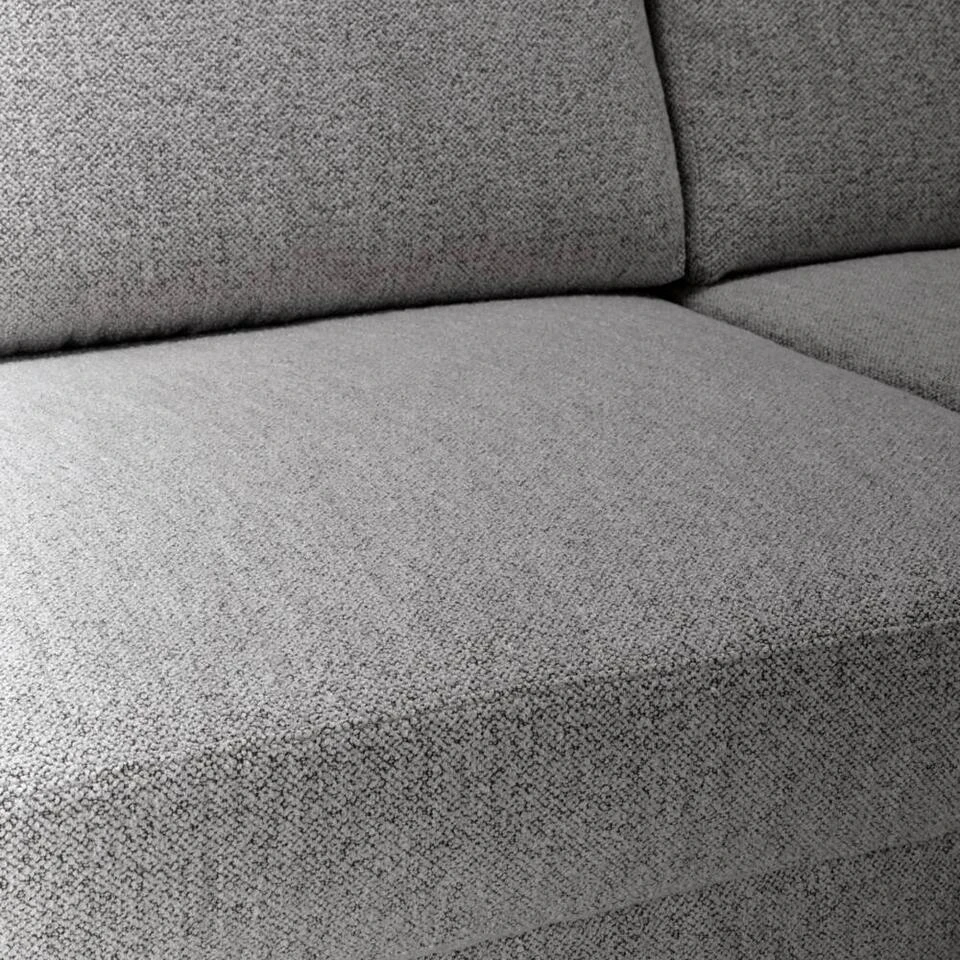 Hoekbank Tom heeft een sfeervolle Scandinavische uitstraling uitgevoerd in een grijskleurige stof genaamd Monza. De bank heeft slanke poten en is voorzien van een hoek aan de rechterkant. Hoekbank Tom biedt ruimte genoeg om met meerdere mensen op te zitten.Â