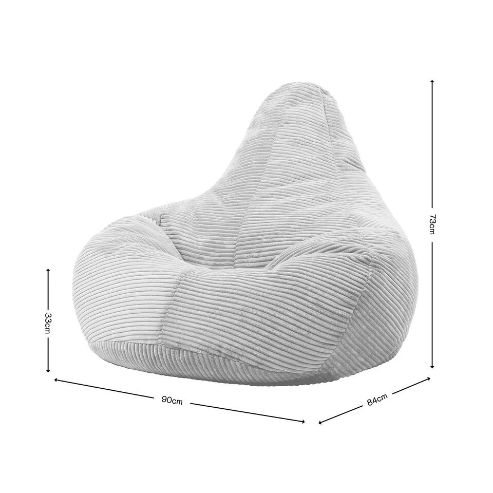 RELAX EN LEUN ACHTEROVER; Deze zitzakzetel is gemaakt om lang in te zitten, vervaardigd in super zacht corduroy en gevuld met precies de juiste hoeveelheid kralen voor een perfect ondersteunend inzakeffect.