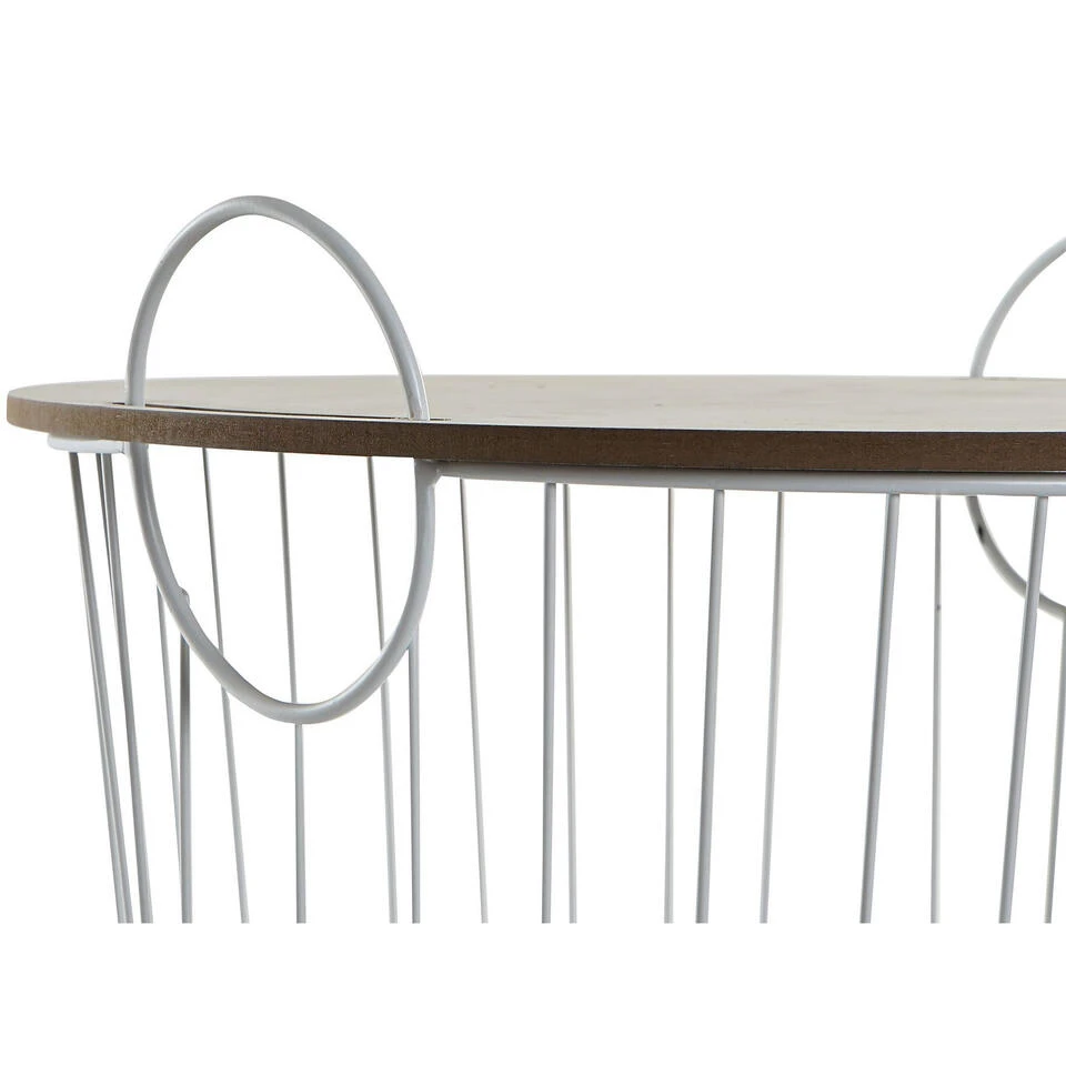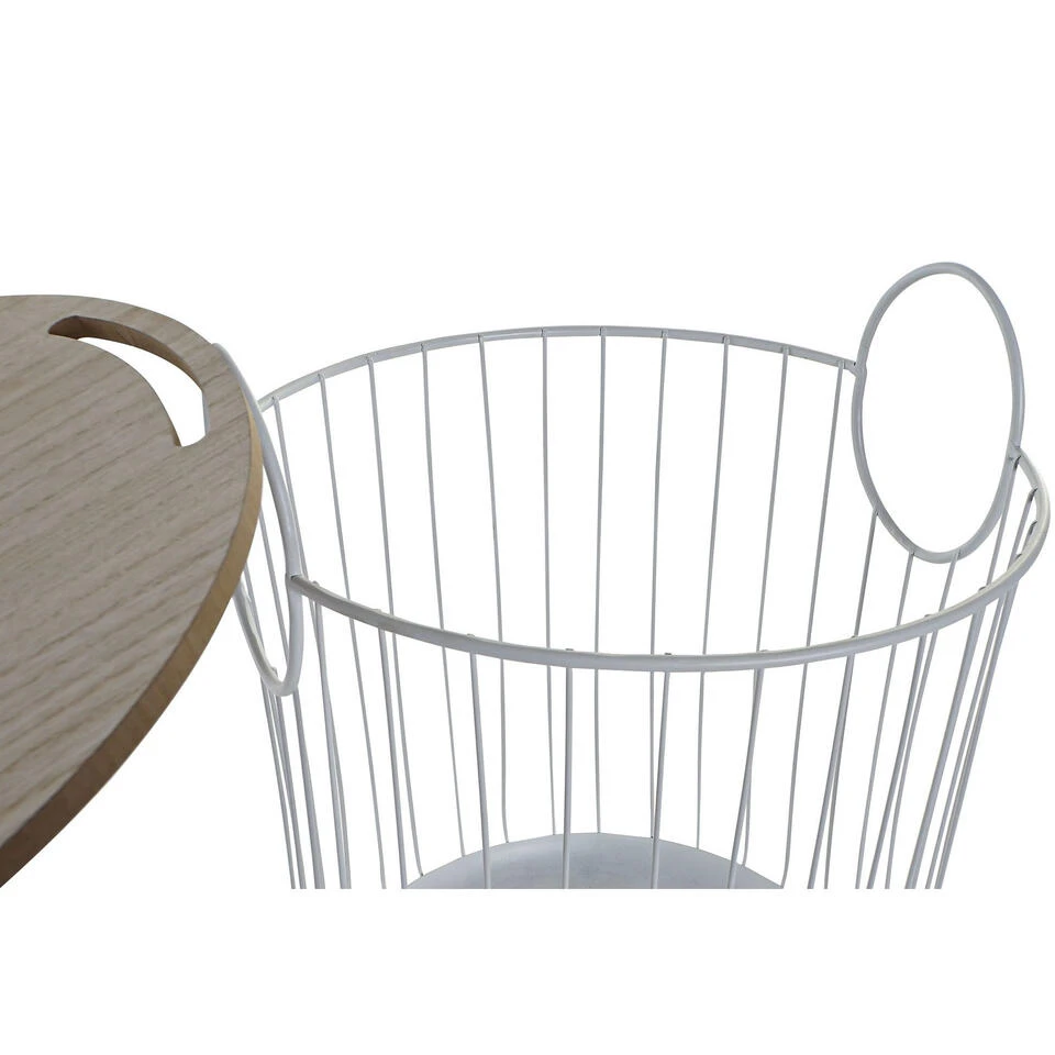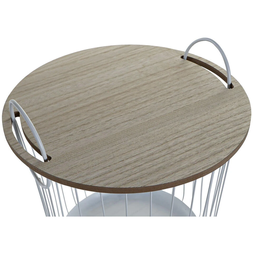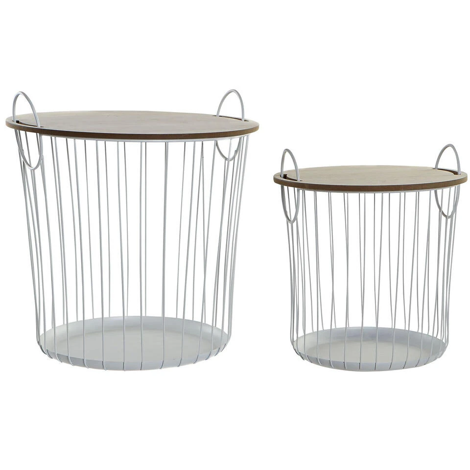 Items Bijzettafel – 2 Stuks – Manden – Metaal En MDF – Wit
