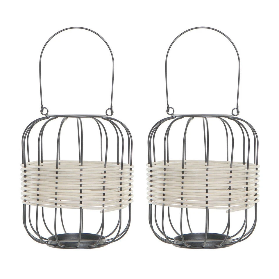 Items Lantaarn – Kaarshouder – Metaal Met Rotan – Zwart – 23 Cm