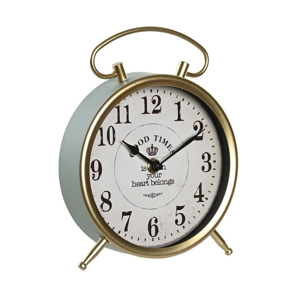 Items tafelklok Plaza station in goudkleurig metaal voor een robuuste en stijlvolle look. Met een afmeting van ca. 16 x 4 x 23 cm is deze staande klok perfect voor plaatsing op een bureau, sidetable of nachtkastje. De stevige metalen constructie geeft een luxe uitstraling en past in verschillende interieurstijlen. Werkt op 1 AA-batterij (niet inbegrepen). Een prachtige blikvanger voor elke ruimte.