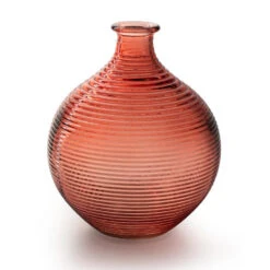 Jodeco Bloemenvaas – Oranje/terra Glas – Ribbel – D16 X H20 Cm