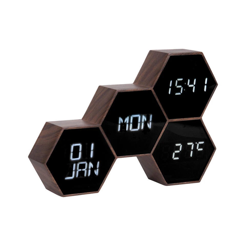 Deze moderne digitale wekker van Karlsson met usb-aansluiting helpt je natuurlijk om op tijd op te staan. Maar zeshoekige design wekker Six in the mix kan meer! Je leest de dag, datum en temperatuur eenvoudig af én hij reageert bij aanraking of geluid. Handig! Dankzij dit goudkleurige pareltje naast je bed stap jij dagelijks met je goede been uit bed. Karlsson klokken en wekkers zijn wereldwijd favoriet. Een kleine greep uit het aanbod: de Karlsson block wekker, Karlsson wekker square, óf een wekker van hout of koper.