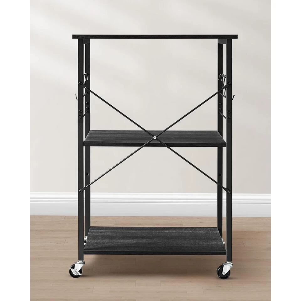 Deze handige trolley verplaatst zich eenvoudig door je keuken door de 4 stevige wielen, waarvan twee met rem.