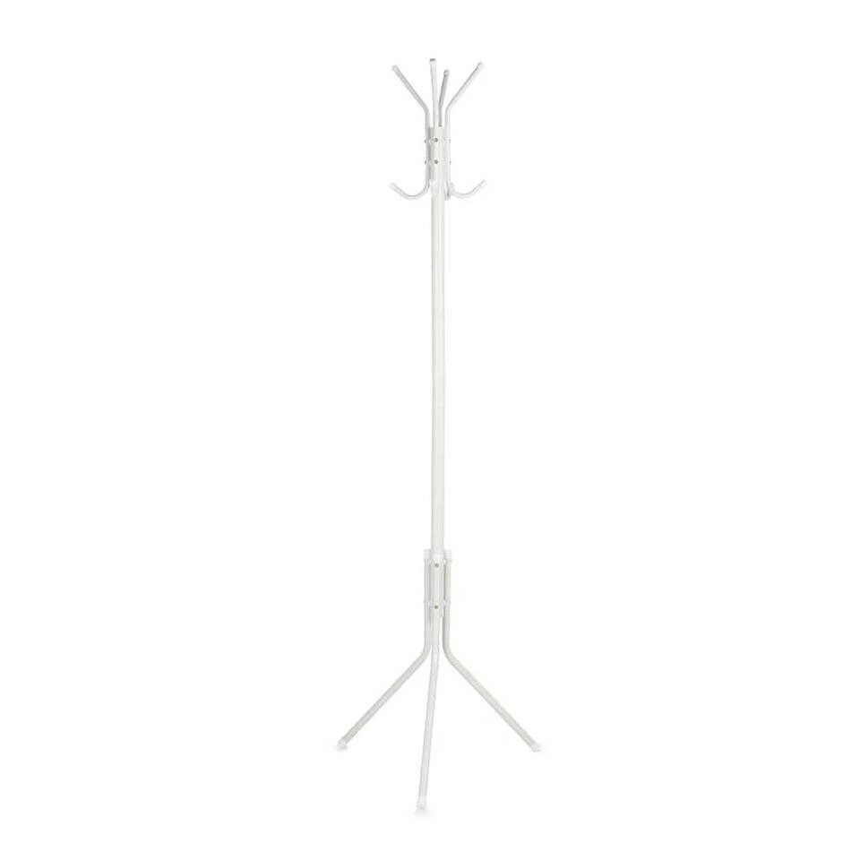 Een Witte staande 3-poots kapstok, met een totale hoogte van ca. 175 x 48 cm. Aan de bovenkant is ruimte voor bijvoorbeeld 4 hoeden of petten en daaronder kunnen 4 jassen of tassen hangen. Materiaal: Metaal.