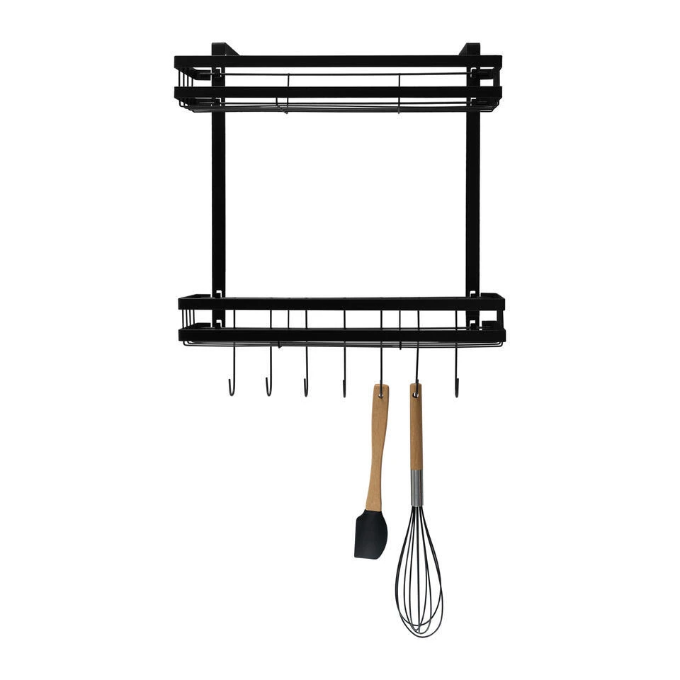 Dit ophangbaar kruidenrek leent zich perfect voor tal van praktische toepassingen. Denk hierbij aan het ophangen van keukengerei, kruiden of koffiekopjes. Hierdoor tover je je keuken om tot een ware coffee corner en kun je de leukste creaties met koffie maken. De haken waar je de spullen aan op kan hangen zorgen voor een erg speelse twist in de keuken.