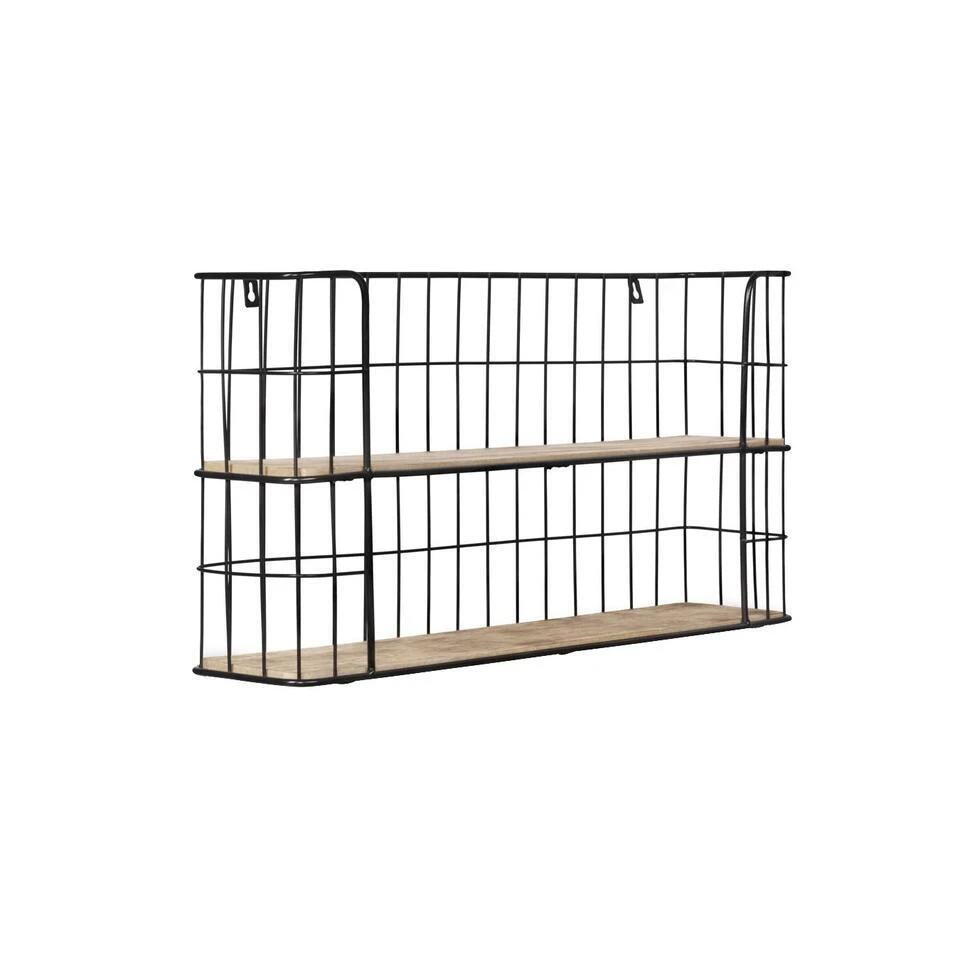 Wandrek Malaga Dit rechthoekige wandrek past binnen elk type interieur! Het rek is een echte eyecatcher en kan eenvoudig worden bevestigd aan de wand in de woonkamer, de slaapkamer, de keuken of in een andere kamer. De keuze is aan jou! De muurrek is voorzien van 2 handige planken die opbergruimte bieden. Plaats je foto’s, bloempotjes, kruidenpotjes, boeken en andere woonaccessoires in dit functionele bakkersrek. Dit rekje dient niet alleen als rekje voor in de woonkamer of slaapkamer. Je kunt dit opbergrekje namelijk ook prima gebruiken als kruidenrek voor in de keuken. Al met al een zeer veelzijdig rekje! Details: – materiaal: metaal en hout; – afmetingen: 66,5 x 14,3 x 33,6 cm; – 2 planken.