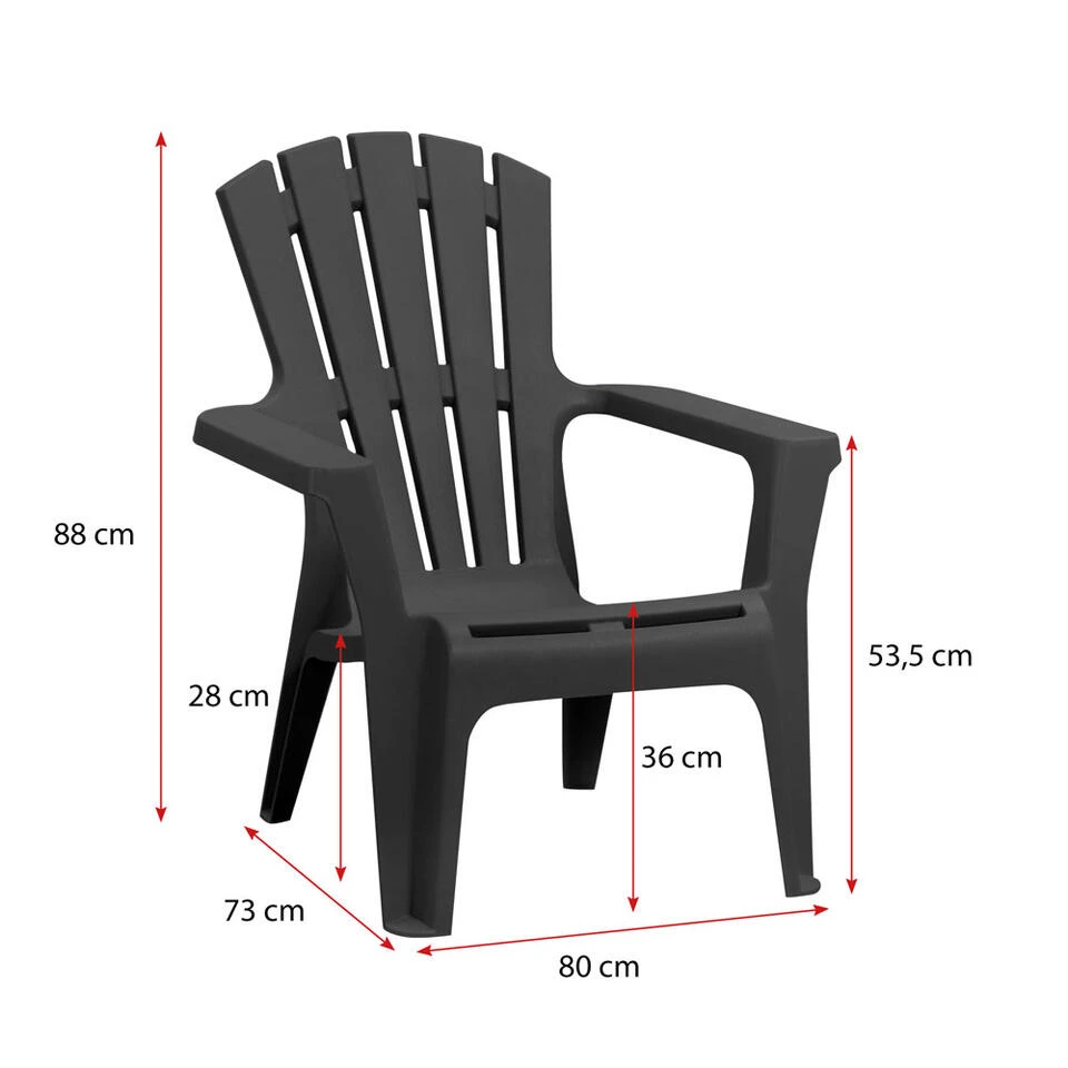 Dit is een fijne, stijlvolle en comfortabele loungestoel die prachtig staat in je tuin, maar ook op een balkon of een dakterras. De Maryland stoel is gemaakt van hoogwaardig antraciet kleurige kunststof. Hierdoor kan deze loungestoel tegen een stootje, is hij onderhoudsvriendelijk en weerbestendig. Het is een lichtgewicht tuinstoel, waardoor hij makkelijk te verplaatsen is. De Maryland stoel is stapelbaar, dus heb je niet veel ruimte om de stoelen op te bergen als je ze voor langere tijd niet gebruikt? Geen probleem, stapel ze op zo nemen ze minimale ruimte in.Â