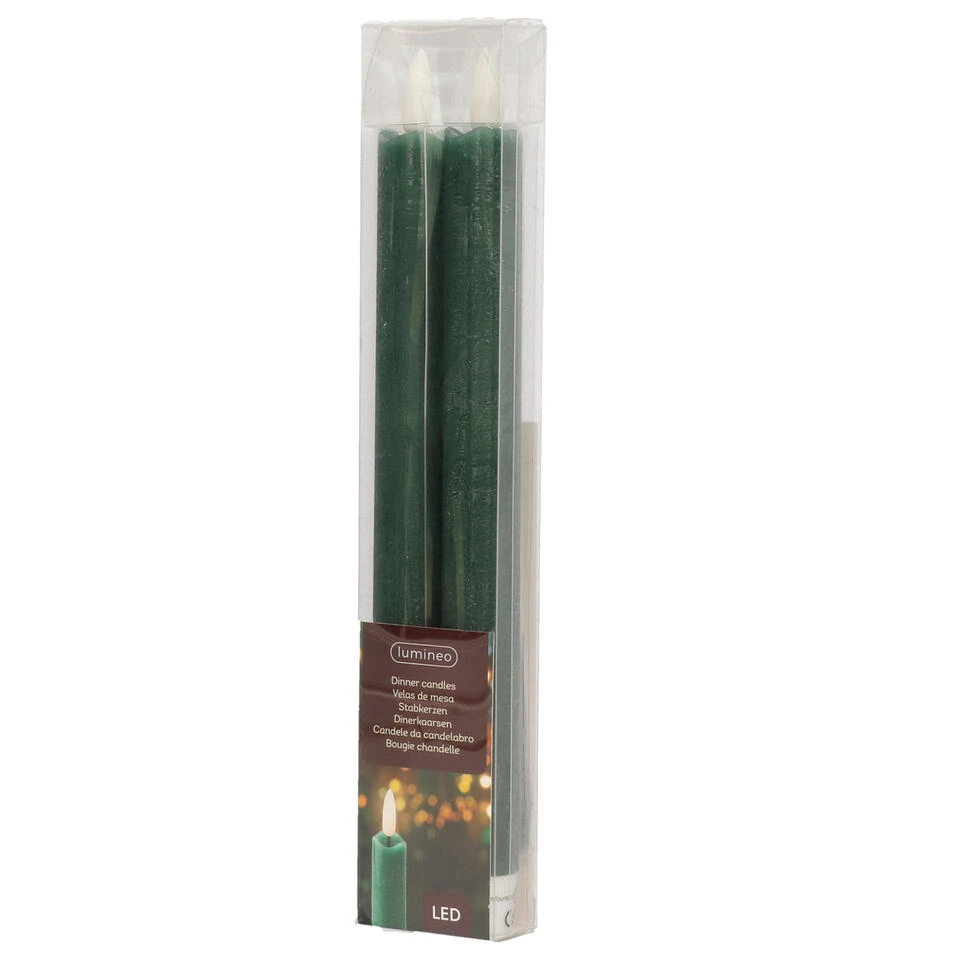Kaarsen set van 2x stuks Led dinerkaarsen glitter groen 24 cm. Diameter: 2 cm. Voeding: 2 AAA batterijen (niet inbegrepen).