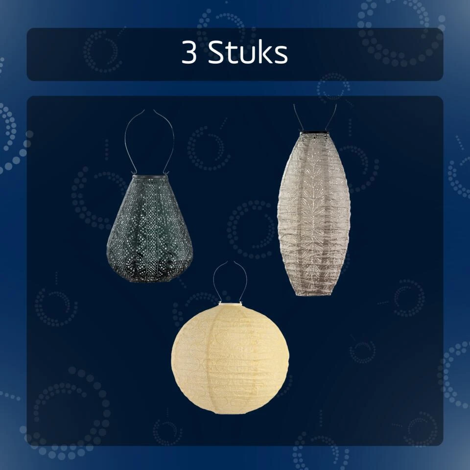 Wat als kiezen nu écht lastig is!? Wij hebben aantal geweldige sets alvast voor je samengesteld welke je zo kunt bestellen. Hang ze aan de Lumiz Terras Standaard of gewoon los in de tuin! You can choose! Deze set bestaat uit de volgende drie lampionnen:
