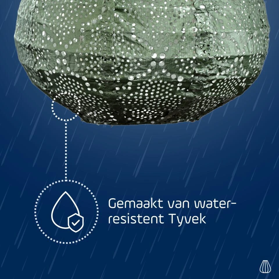 De Lumiz Solar Buitenlamp is ontworpen met zowel esthetiek als duurzaamheid in gedachten. De lampion is gemaakt van Tyvek, een sterk, weerbestendig en 100% recyclebaar materiaal dat lang meegaat. Bovendien geeft de lampion een warm LED licht dat perfect is voor het creëren van een gezellige en sfeervolle ambiance in jouw tuin.