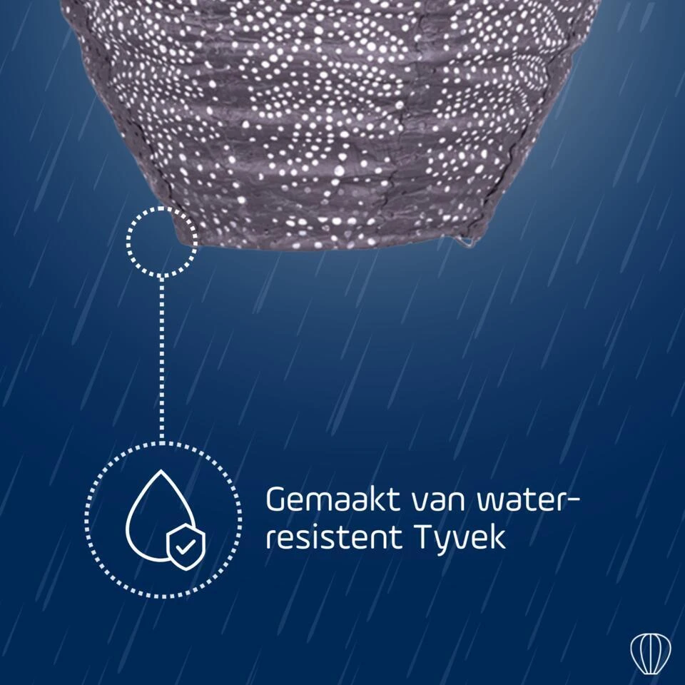 De Lumiz Solar Buitenlamp is ontworpen met zowel esthetiek als duurzaamheid in gedachten. De lampion is gemaakt van Tyvek, een sterk, weerbestendig en 100% recyclebaar materiaal dat lang meegaat. Bovendien geeft de lampion een warm LED licht dat perfect is voor het creëren van een gezellige en sfeervolle ambiance in jouw tuin.