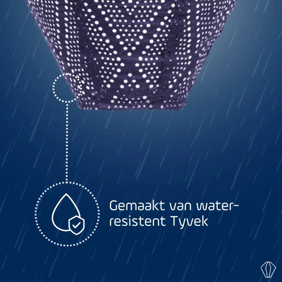 - De Buitenlamp is vervaardigd uit Tyvek, een sterk, weerbestendig en duurzaam 100% recyclebaar materiaal.