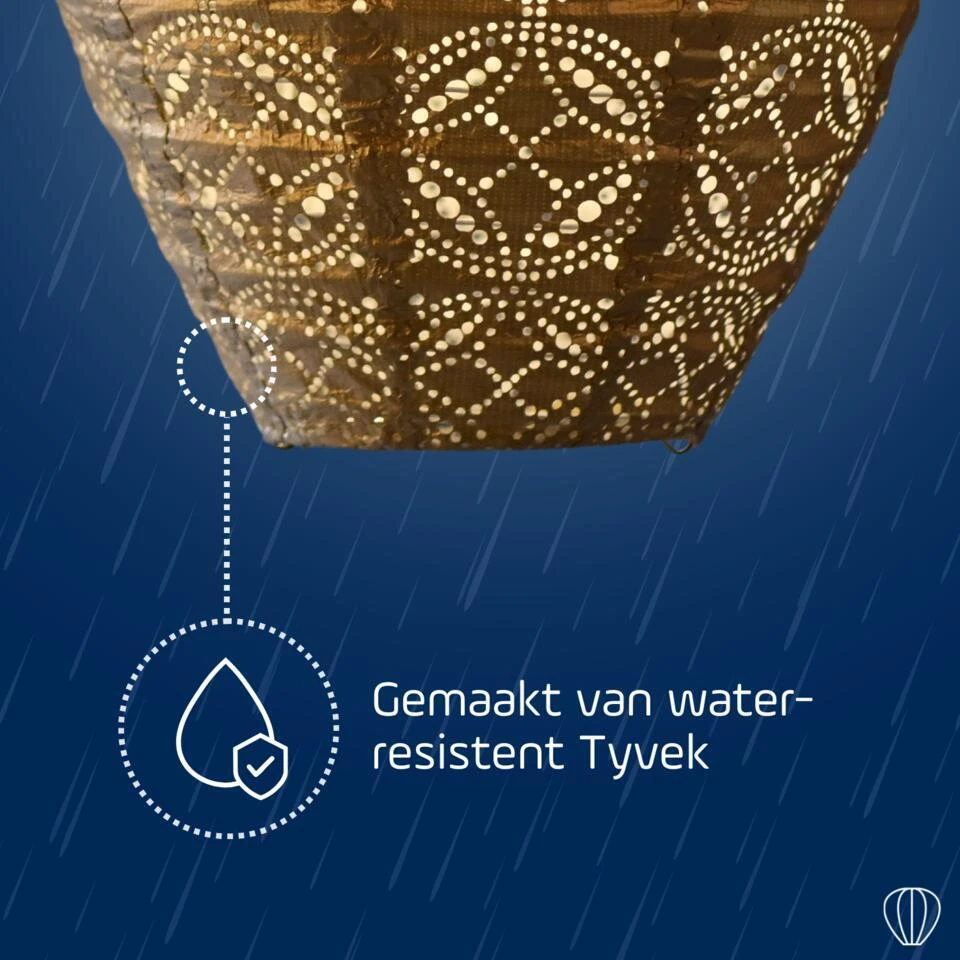 De Lumiz Solar Buitenlamp is ontworpen met zowel esthetiek als duurzaamheid in gedachten. De lampion is gemaakt van Tyvek, een sterk, weerbestendig en 100% recyclebaar materiaal dat lang meegaat. Bovendien geeft de lampion een warm LED licht dat perfect is voor het creëren van een gezellige en sfeervolle ambiance in jouw tuin.