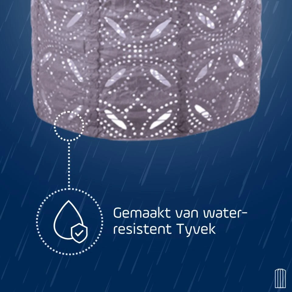 De Lumiz Solar Buitenlamp is ontworpen met zowel esthetiek als duurzaamheid in gedachten. De lampion is gemaakt van Tyvek, een sterk, weerbestendig en 100% recyclebaar materiaal dat lang meegaat. Bovendien geeft de lampion een warm LED licht dat perfect is voor het creëren van een gezellige en sfeervolle ambiance in jouw tuin.