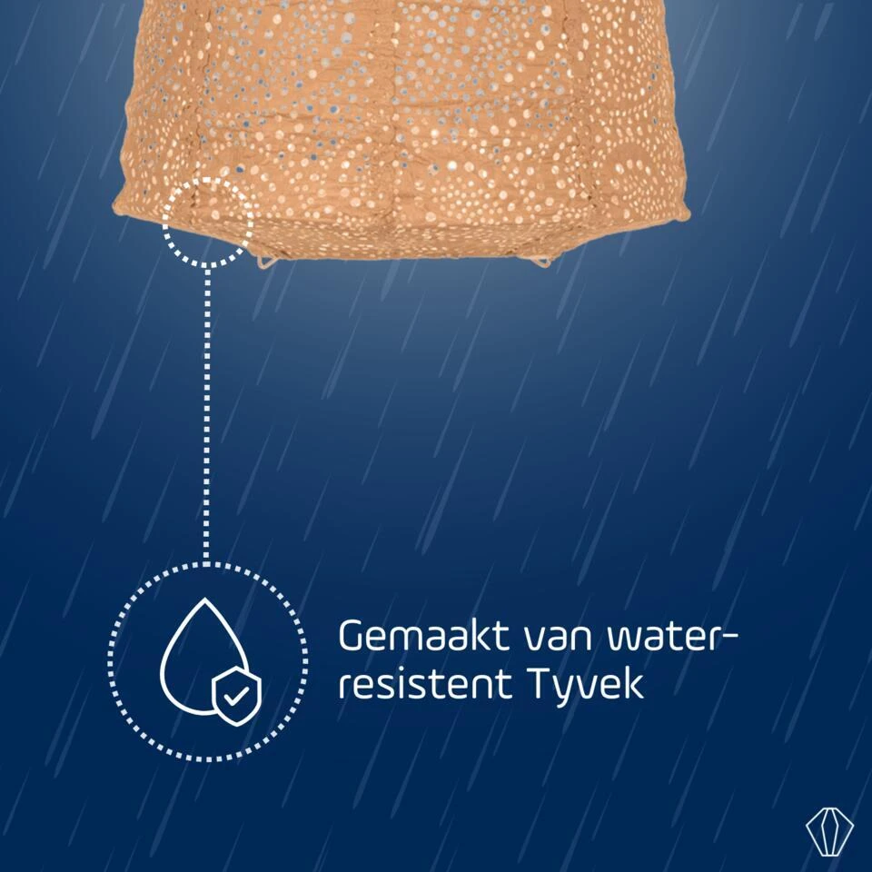 - De Buitenlamp is vervaardigd uit Tyvek, een sterk, weerbestendig en duurzaam 100% recyclebaar materiaal.