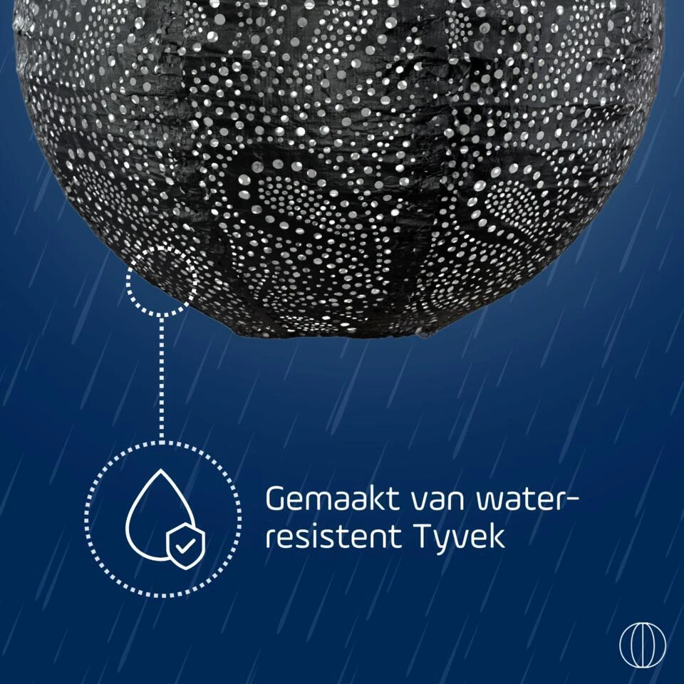 De Lumiz Solar Buitenlamp is ontworpen met zowel esthetiek als duurzaamheid in gedachten. De lampion is gemaakt van Tyvek, een sterk, weerbestendig en 100% recyclebaar materiaal dat lang meegaat. Bovendien geeft de lampion een warm LED licht dat perfect is voor het creëren van een gezellige en sfeervolle ambiance in jouw tuin.