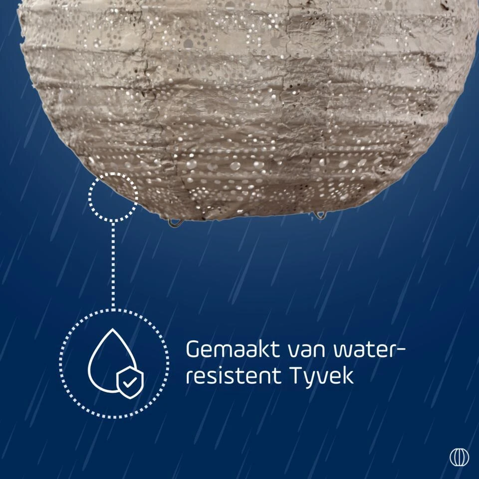 De Lumiz Solar Buitenlamp is ontworpen met zowel esthetiek als duurzaamheid in gedachten. De lampion is gemaakt van Tyvek, een sterk, weerbestendig en 100% recyclebaar materiaal dat lang meegaat. Bovendien geeft de lampion een warm LED licht dat perfect is voor het creëren van een gezellige en sfeervolle ambiance in jouw tuin.